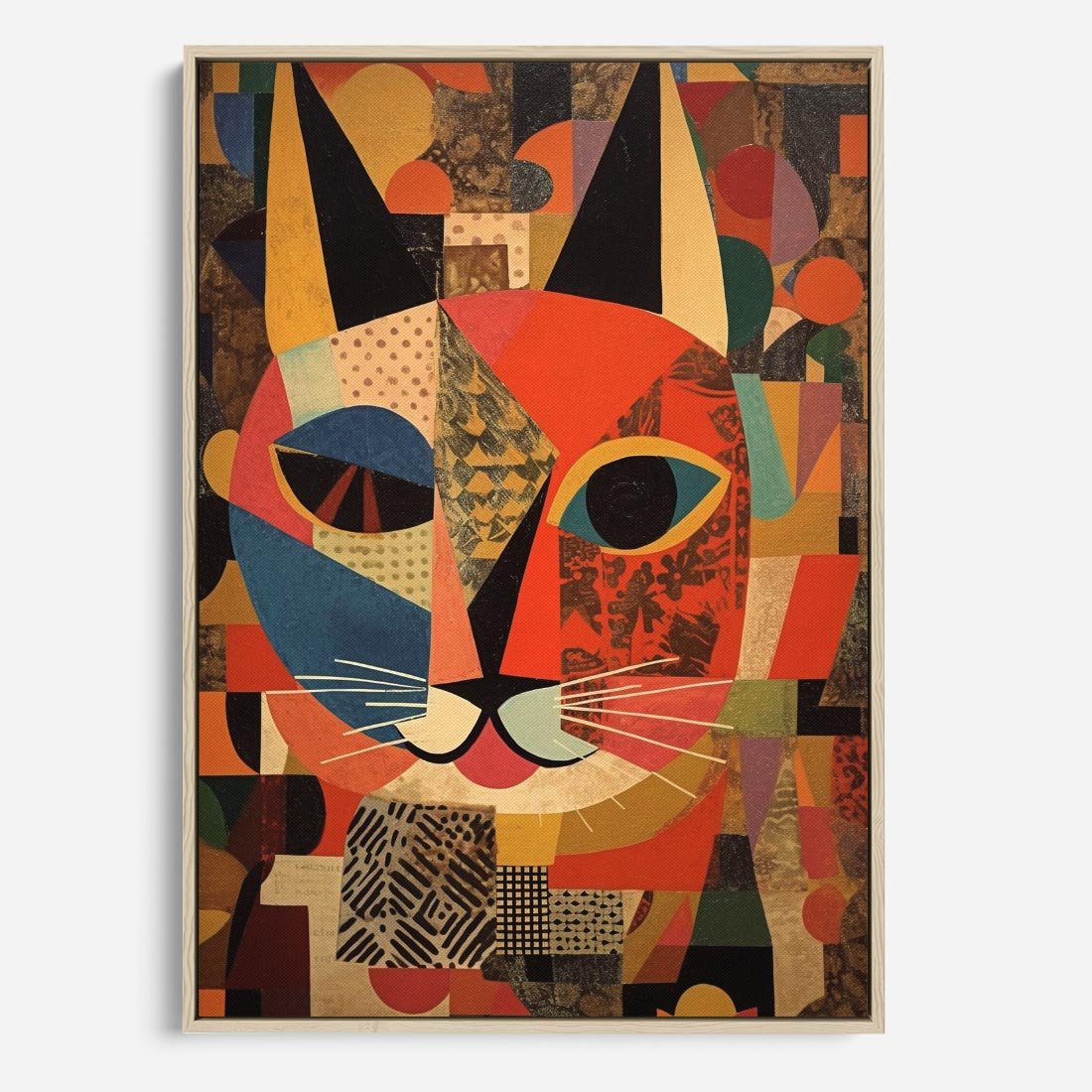 Ten abstrakcyjny obraz olejny przedstawia kota w stylu przypominającym dzieła Picassa. Kontrast pomiędzy kocim profilem a ciemnym tłem tworzy intrygującą atmosferę, oddającą niekonwencjonalne piękno zwierzęcia.