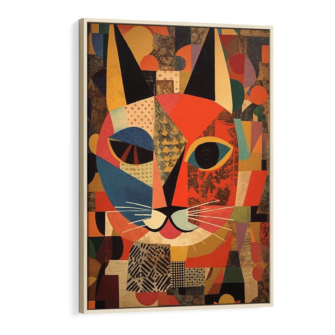 Obraz w ramie 70x100 - Impresje Nieznanych Odniesień - abstrakcyjny obraz olejny, kot - rama drewno