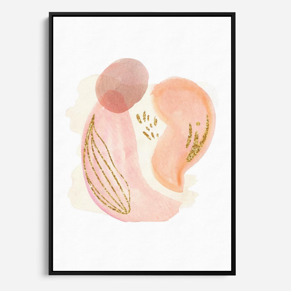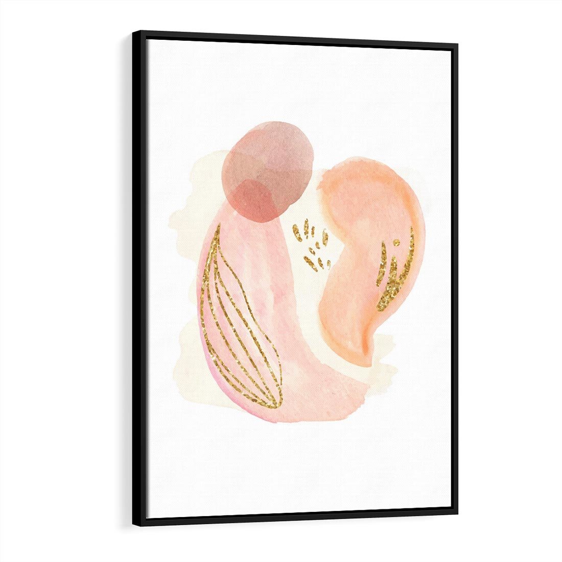 Abstrakcyjne akwarelowe plamy w minimalistycznym stylu. Subtelne pastele złagodzone złotymi elementami tworzą spokojną i wyrafinowaną kompozycję.