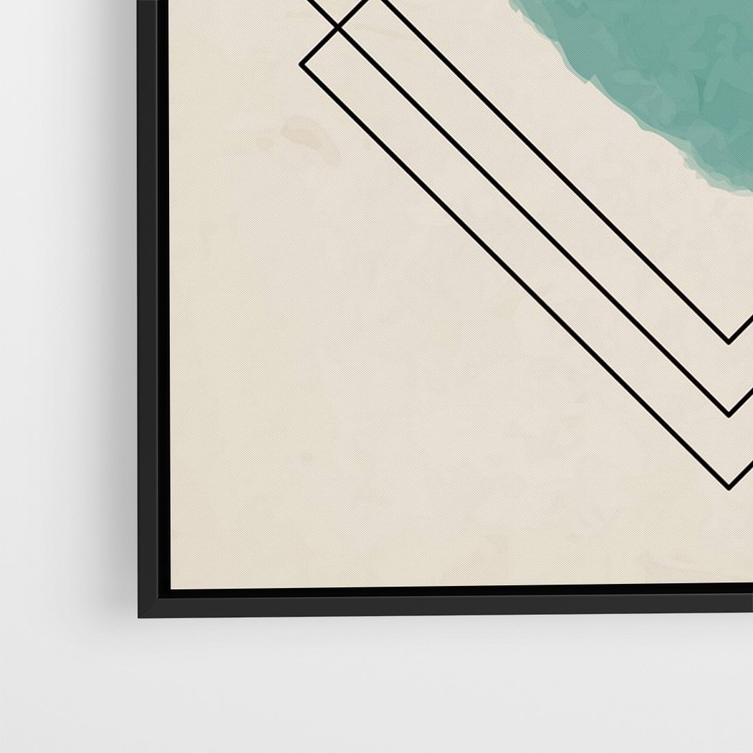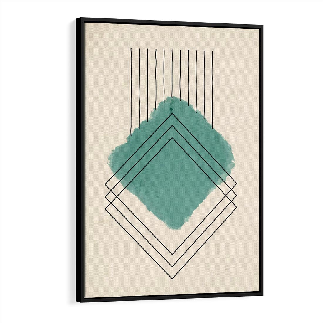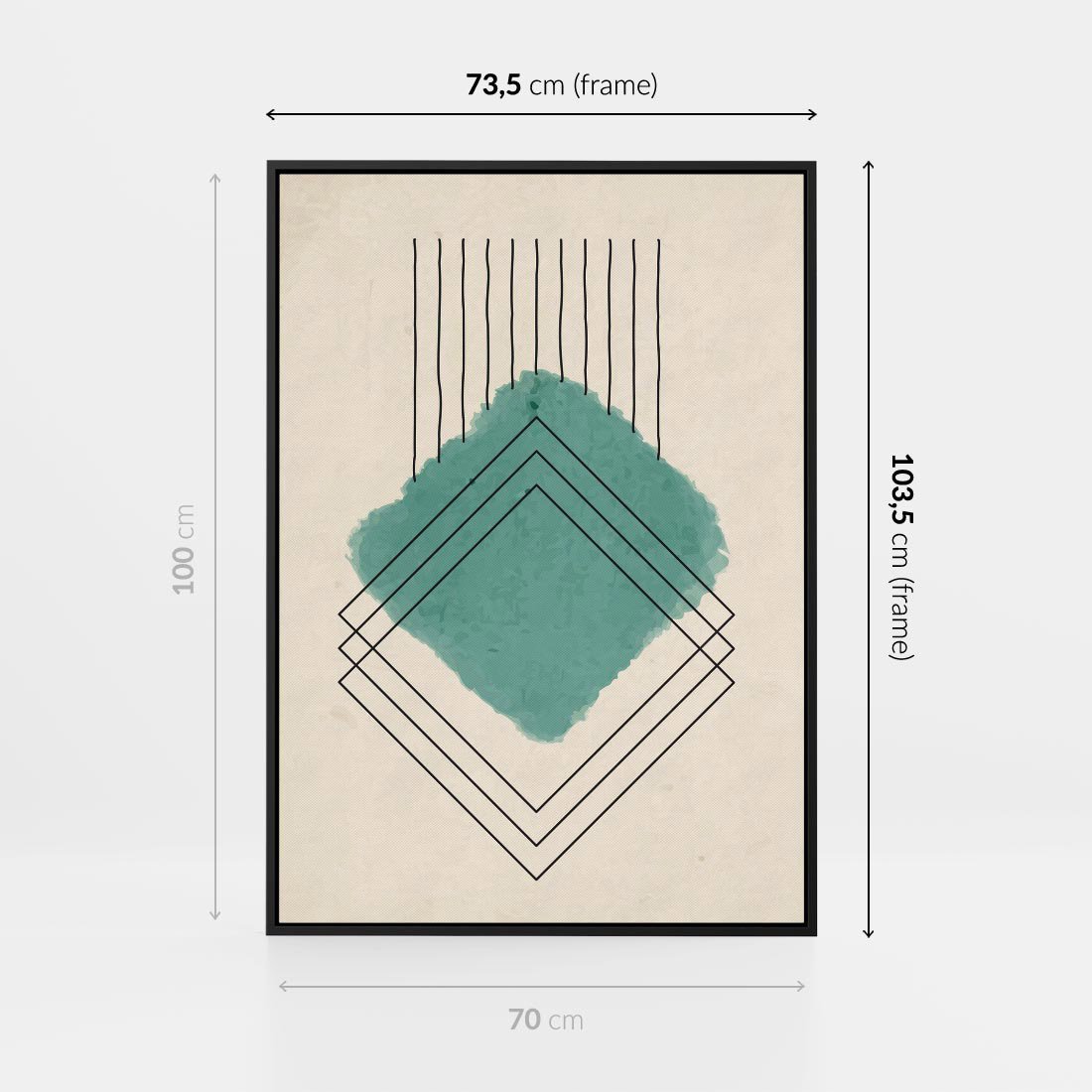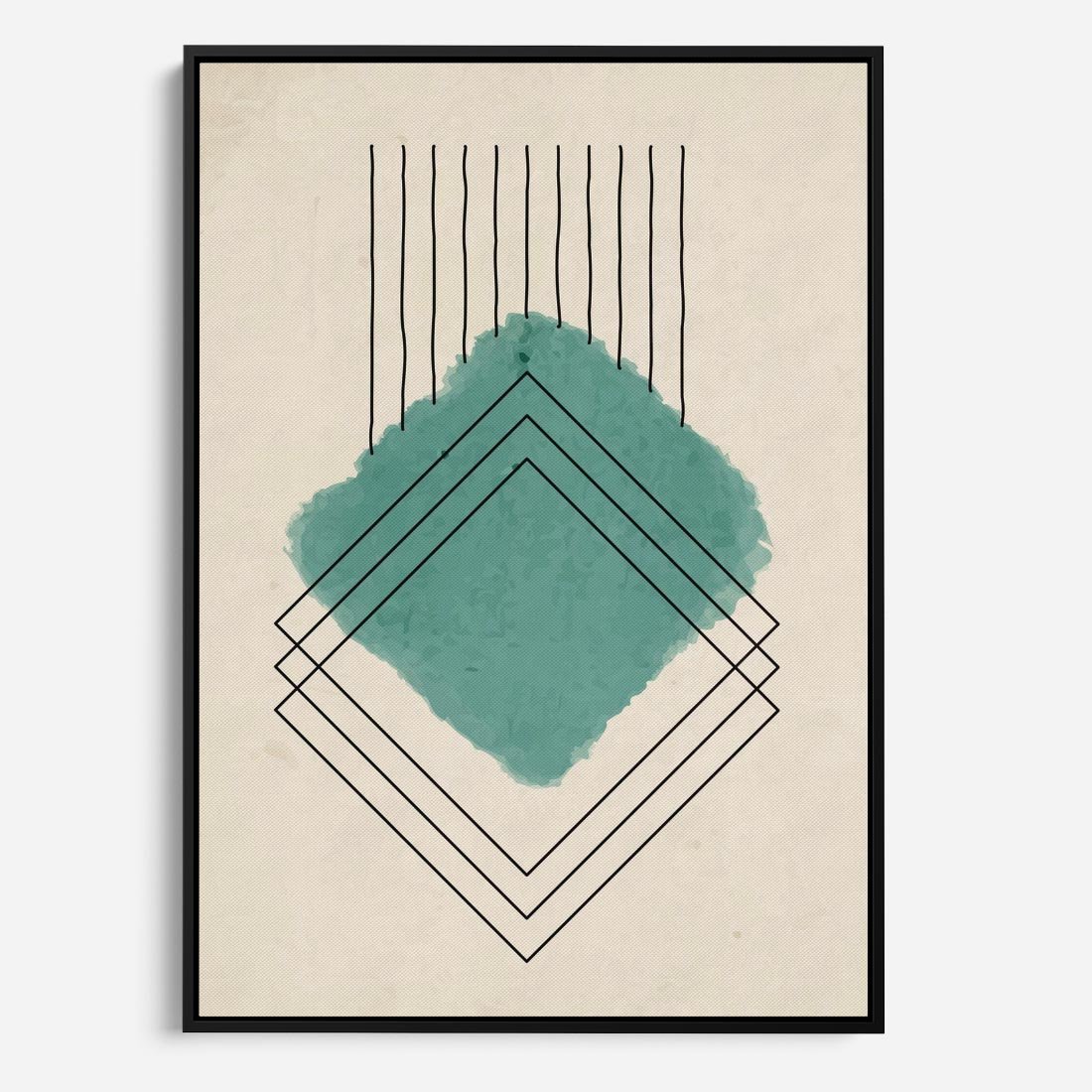 Zrównoważ akwarelową plamę z geometrycznymi, szkicowanymi kształtami, tworząc harmonijną regularność i prostotę w swoim wnętrzu. Odkryj unikalny urok tej kompozycji.