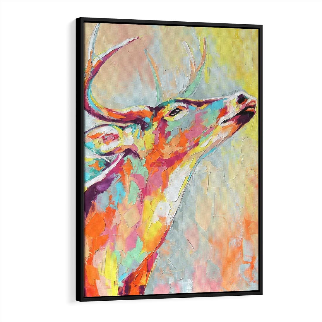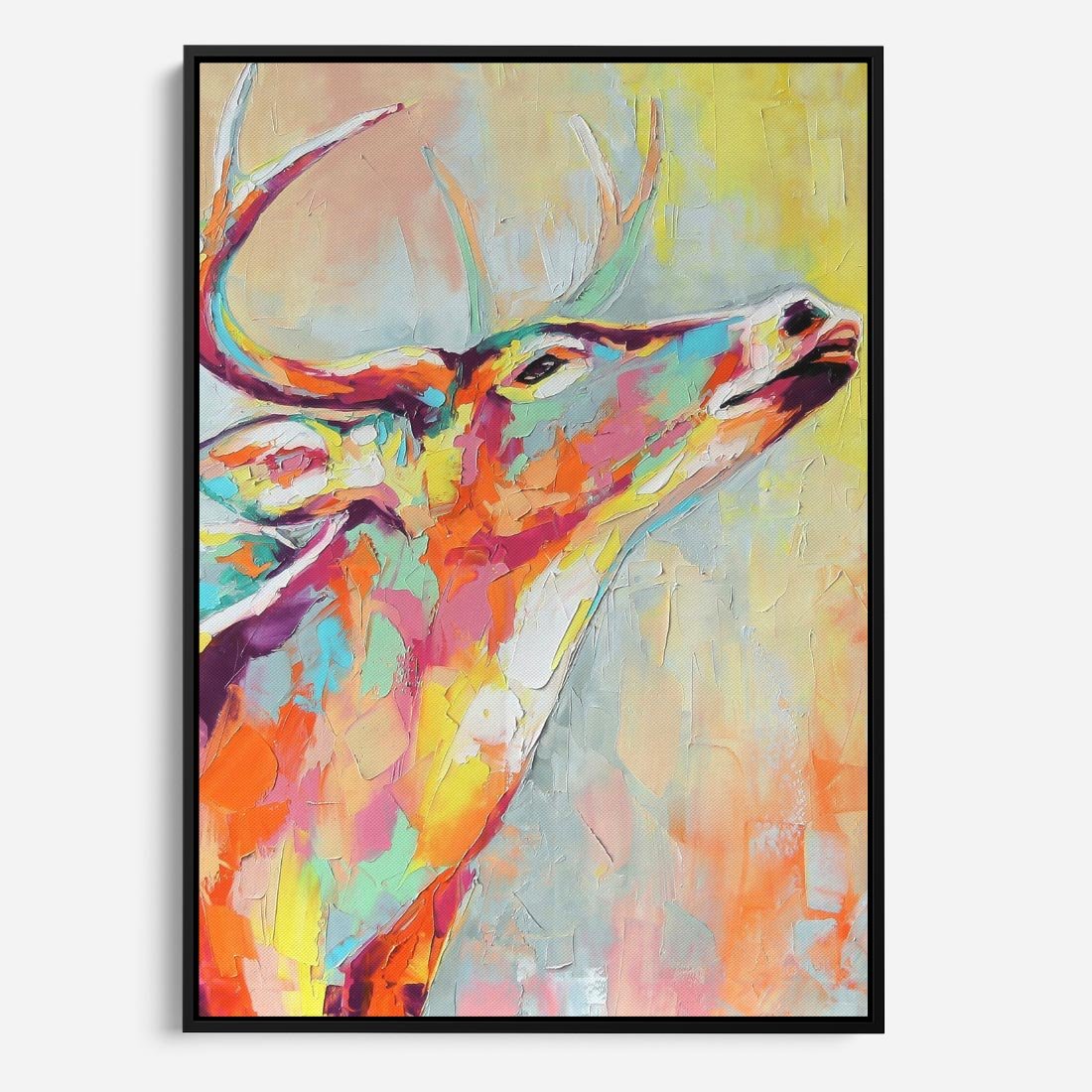 Obraz w ramie 70x100 - Impresje snów malarza - kolorowy olejny obraz, jeleń ryczący na rykowisku - rama czarna