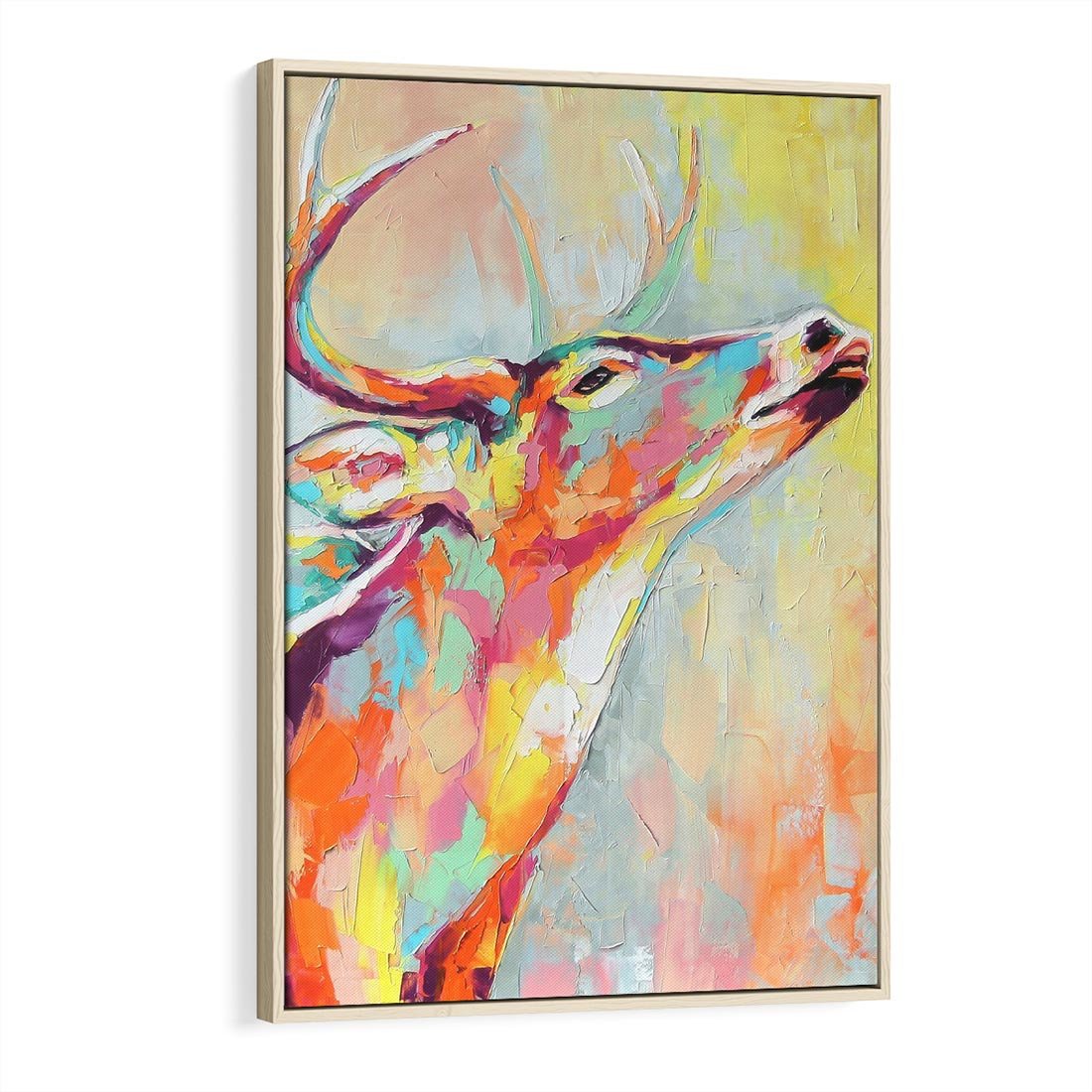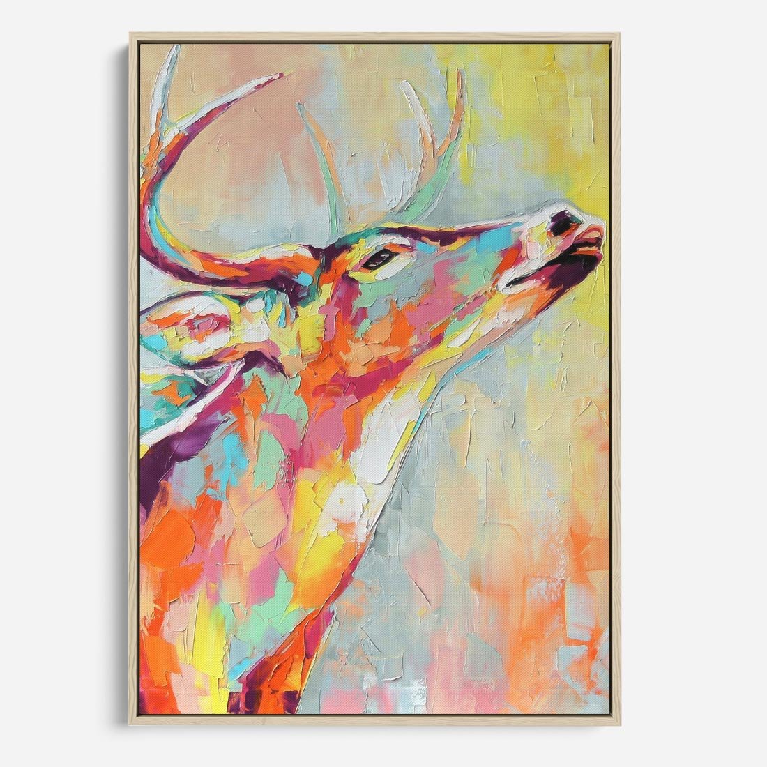 Obraz w ramie 70x100 - Impresje snów malarza - kolorowy olejny obraz, jeleń ryczący na rykowisku - rama drewno