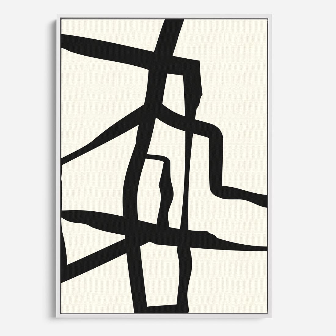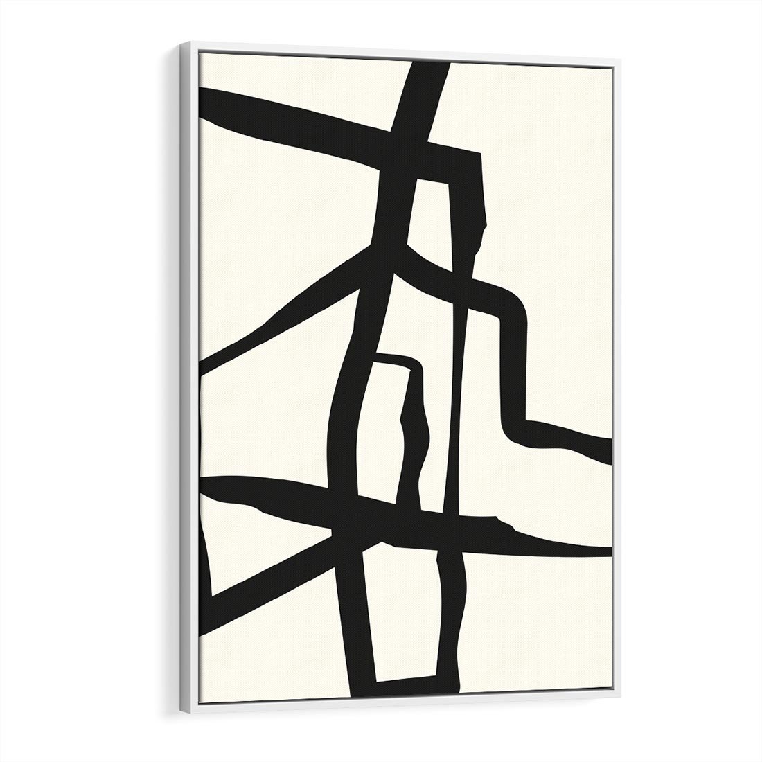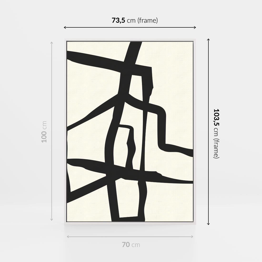 Ten plakat prezentuje minimalistyczną abstrakcję poprzez czarne i białe linie. Sztuka ta wykorzystuje prostotę i minimalizm, tworząc dynamiczną i nowoczesną kompozycję, która pobudza wyobraźnię i zachęca do refleksji nad różnymi interpretacjami, wprowadzając jednocześnie elegancki akcent do Twojej przestrzeni.
