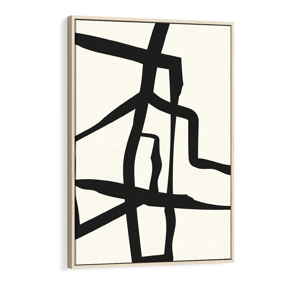 Ten plakat prezentuje minimalistyczną abstrakcję poprzez czarne i białe linie. Sztuka ta wykorzystuje prostotę i minimalizm, tworząc dynamiczną i nowoczesną kompozycję, która pobudza wyobraźnię i zachęca do refleksji nad różnymi interpretacjami, wprowadzając jednocześnie elegancki akcent do Twojej przestrzeni.