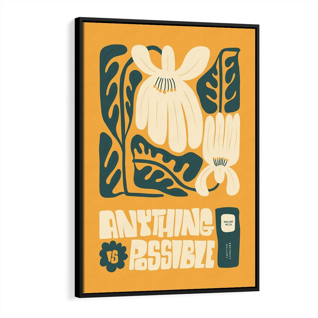 Ten nowoczesny plakat łączy kwiaty w kontekście sztuki modern z efektowną typografią. Sztuka ta wprowadza energetyczny impuls do przestrzeni, inspirując do odkrywania piękna natury i formy w nowatorskim wydaniu.