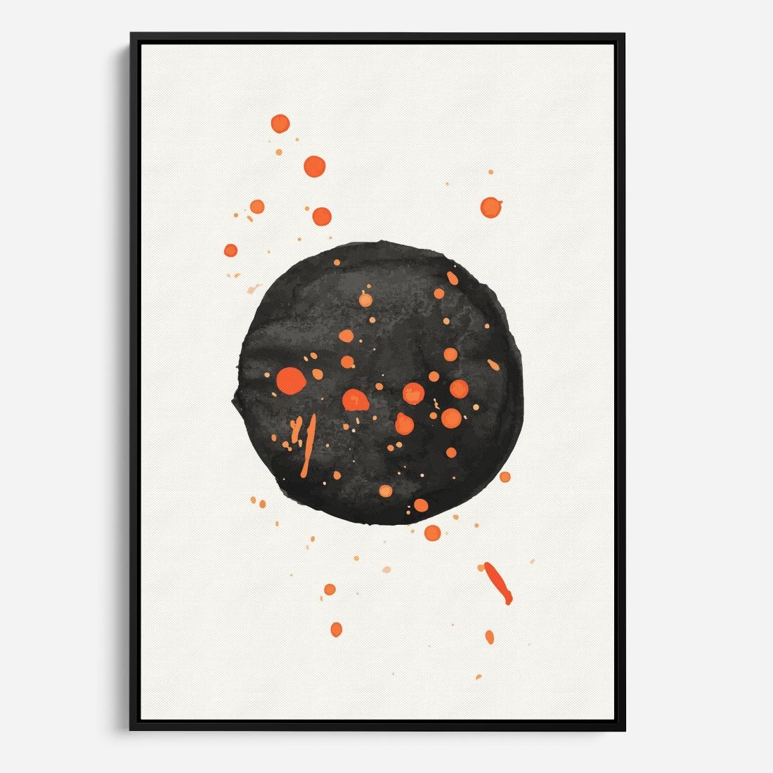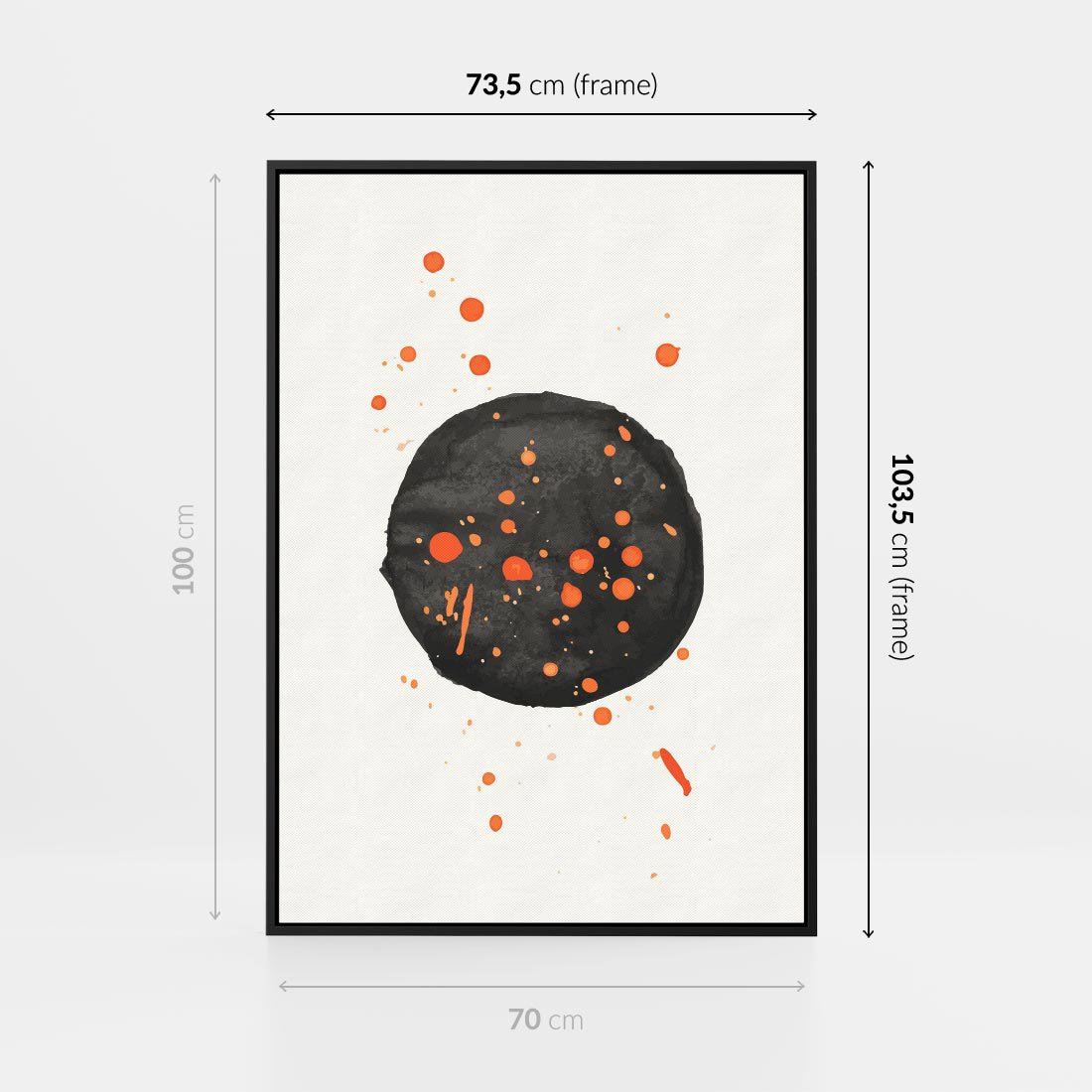 Obraz w ramie 70x100 - Impulsy Kreatywności - abstrakcyjna czarna plama, rozsiane pomarańczowe kropki - rama czarna