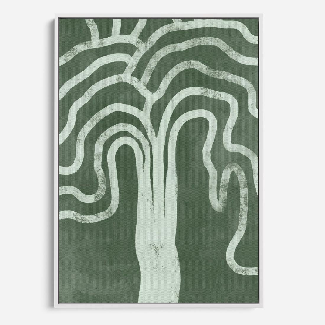 Obraz w ramie 70x100 - Inspirujące Zawiłości Zieleni - abstrakcyjny kształt, zielony plakat - rama biała