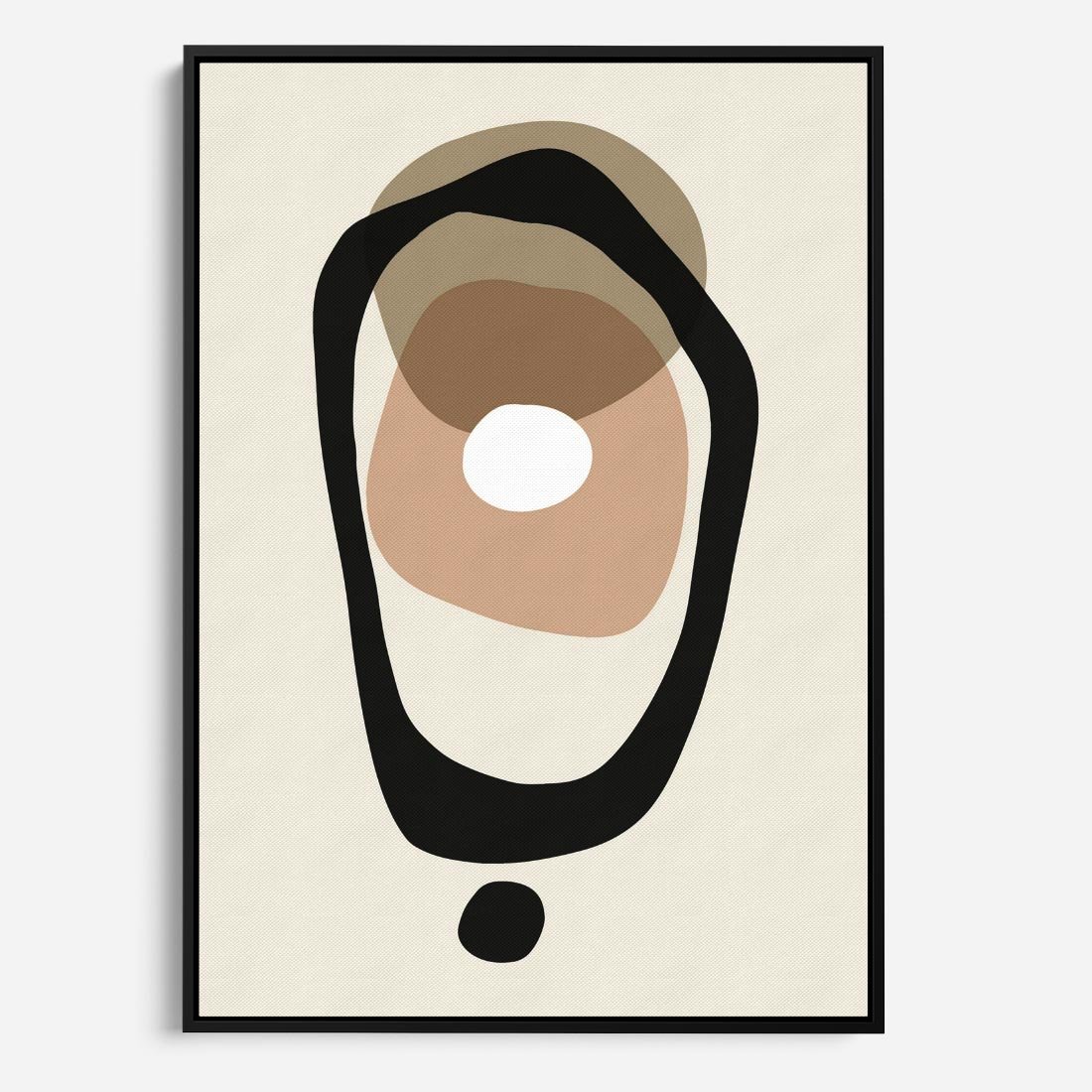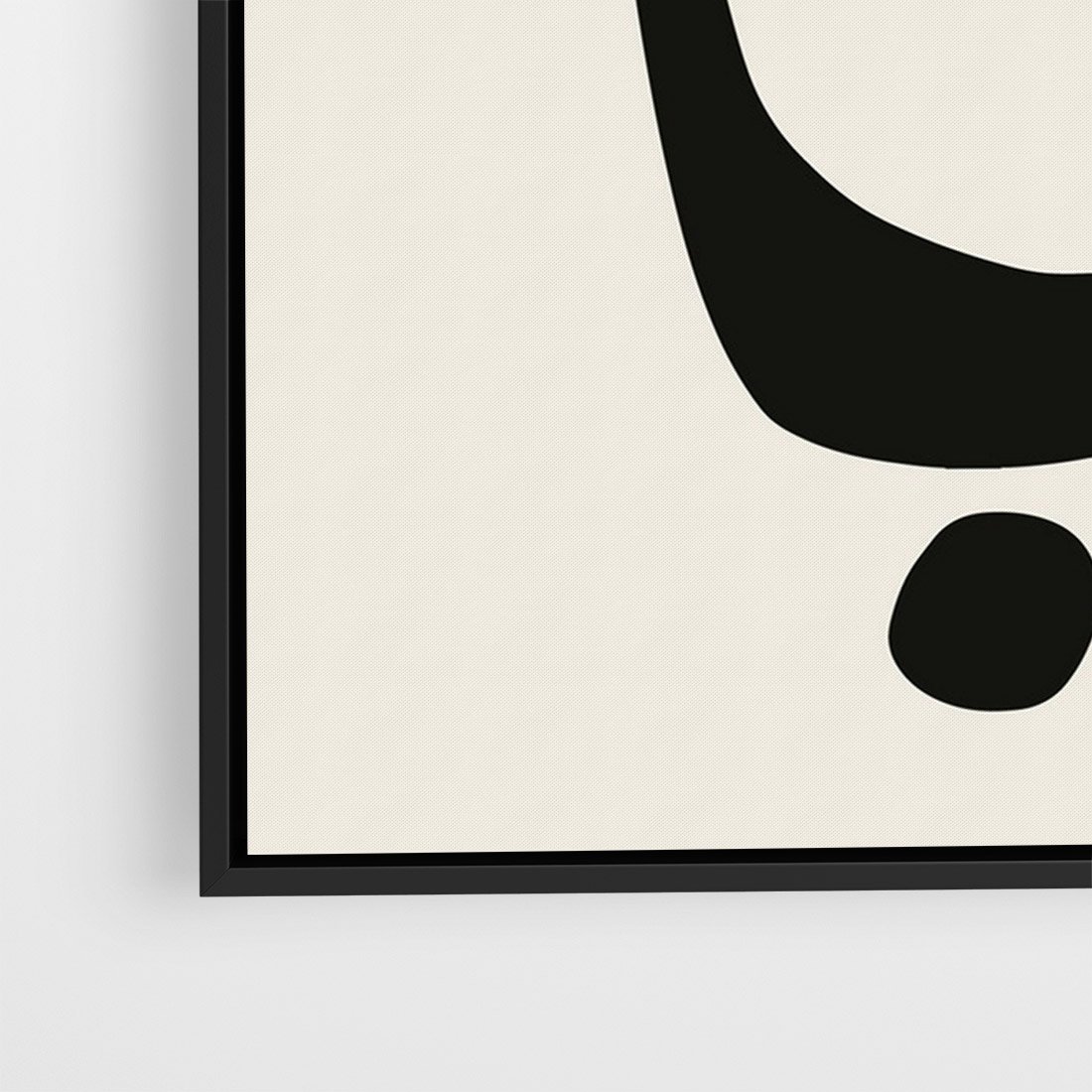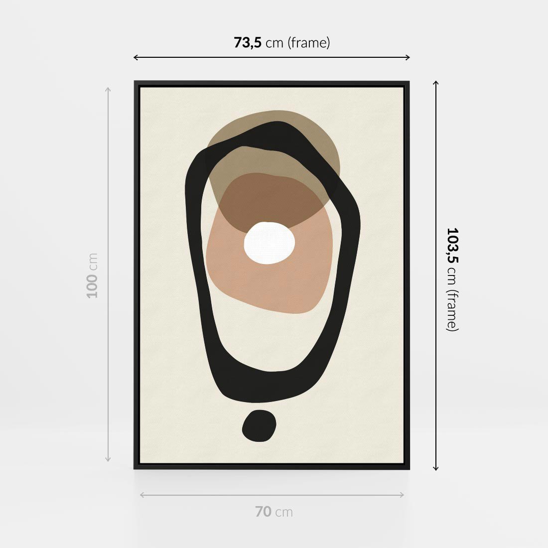 Obraz w ramie 70x100 - Intrygujące Zaskoczenia - beżowa abstrakcyjna kompozycja, czarny akcent - rama czarna