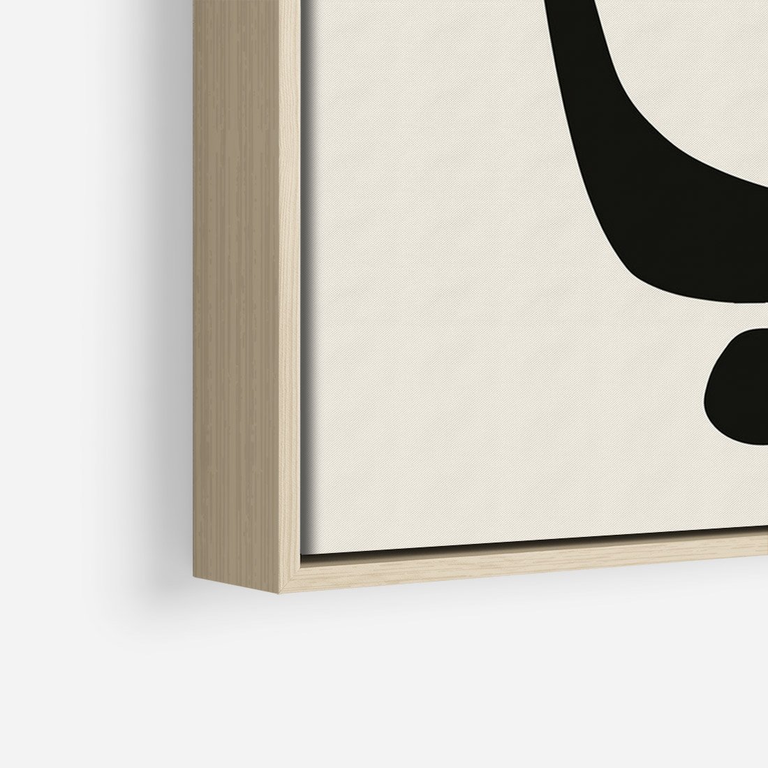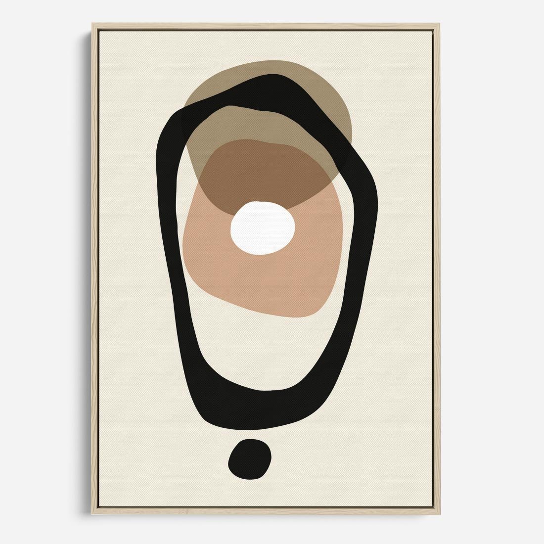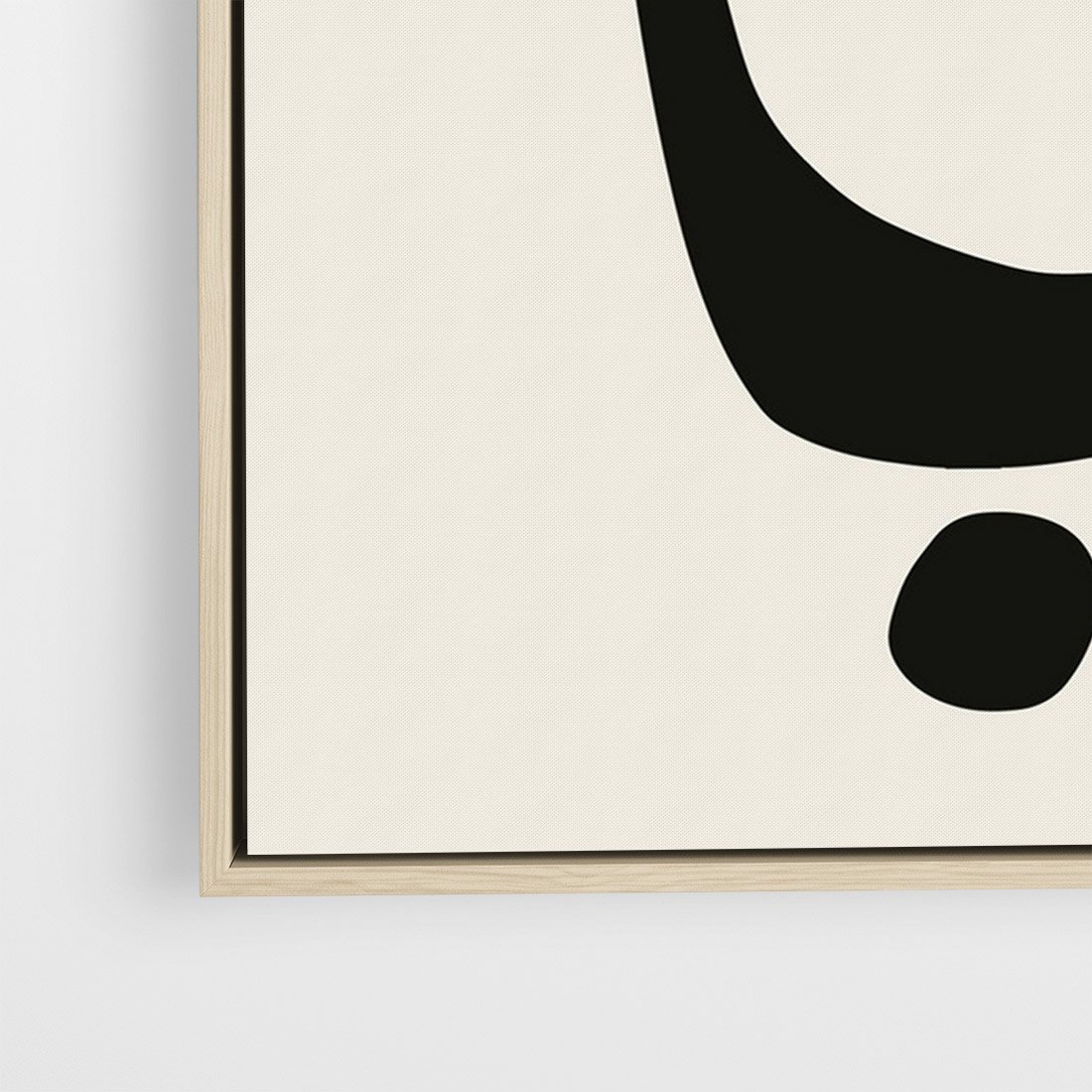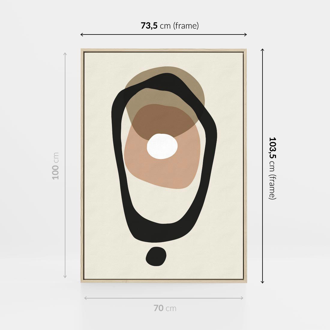 Obraz w ramie 70x100 - Intrygujące Zaskoczenia - beżowa abstrakcyjna kompozycja, czarny akcent - rama drewno