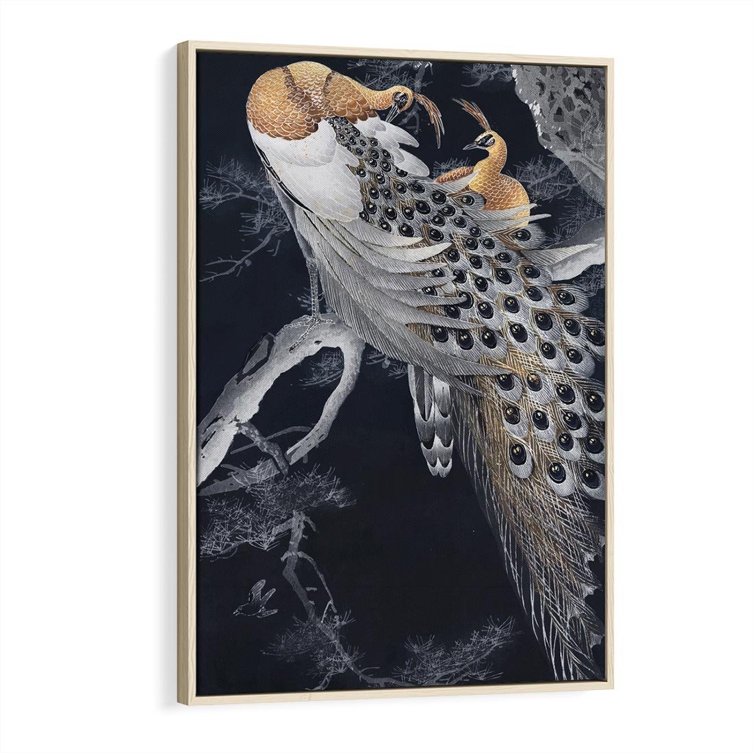 Obraz w ramie 70x100 - Japońskie Pawie - japońska grafika, pawie - rama drewno
