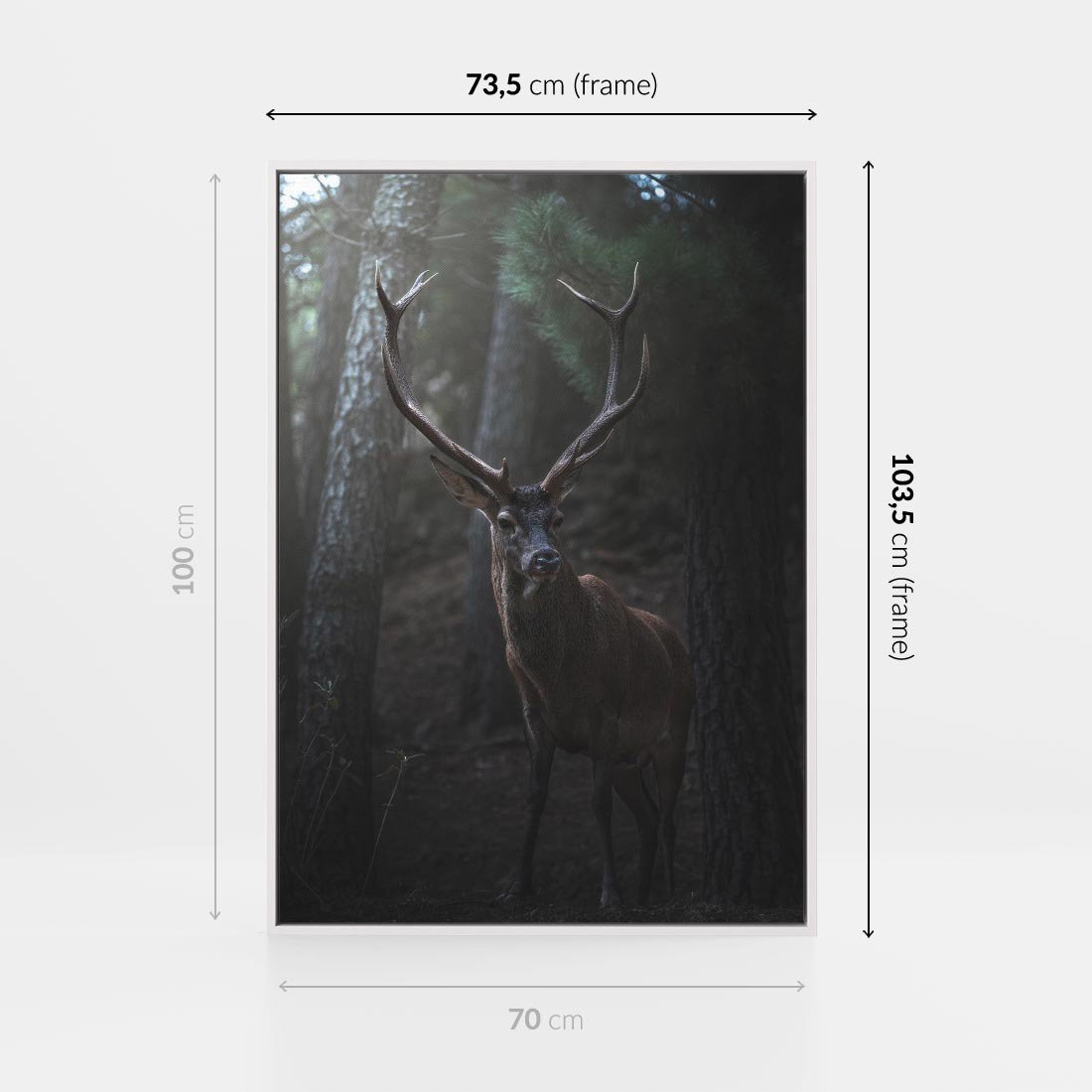 Obraz w ramie 70x100 - Jeleń wśród lasu - jeleń, las - rama biała