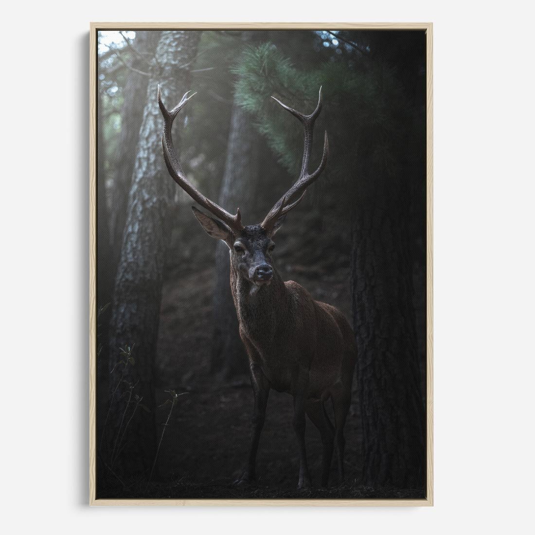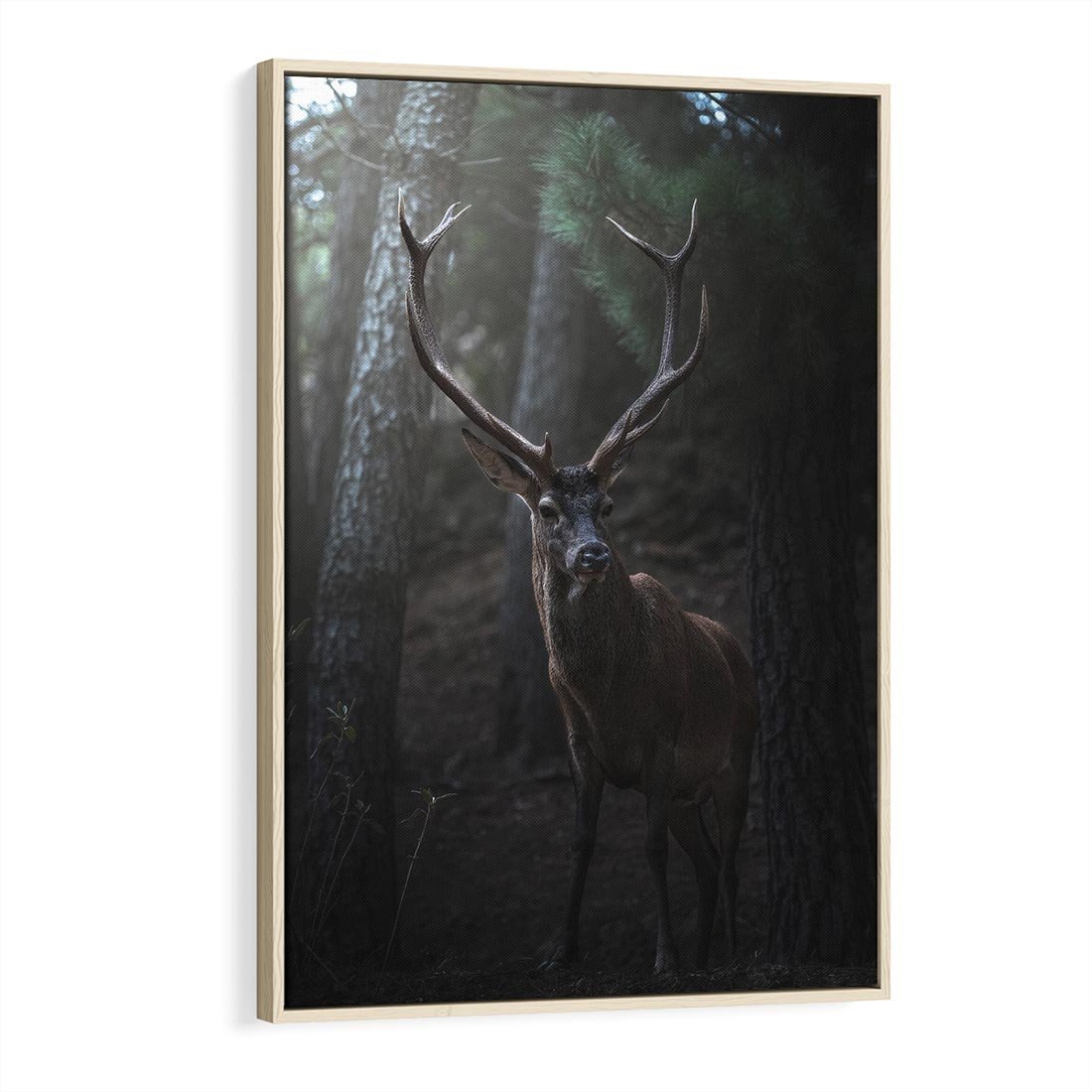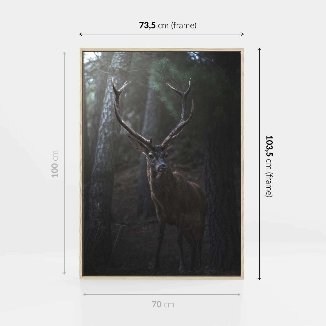 Obraz w ramie 70x100 - Jeleń wśród lasu - jeleń, las - rama drewno