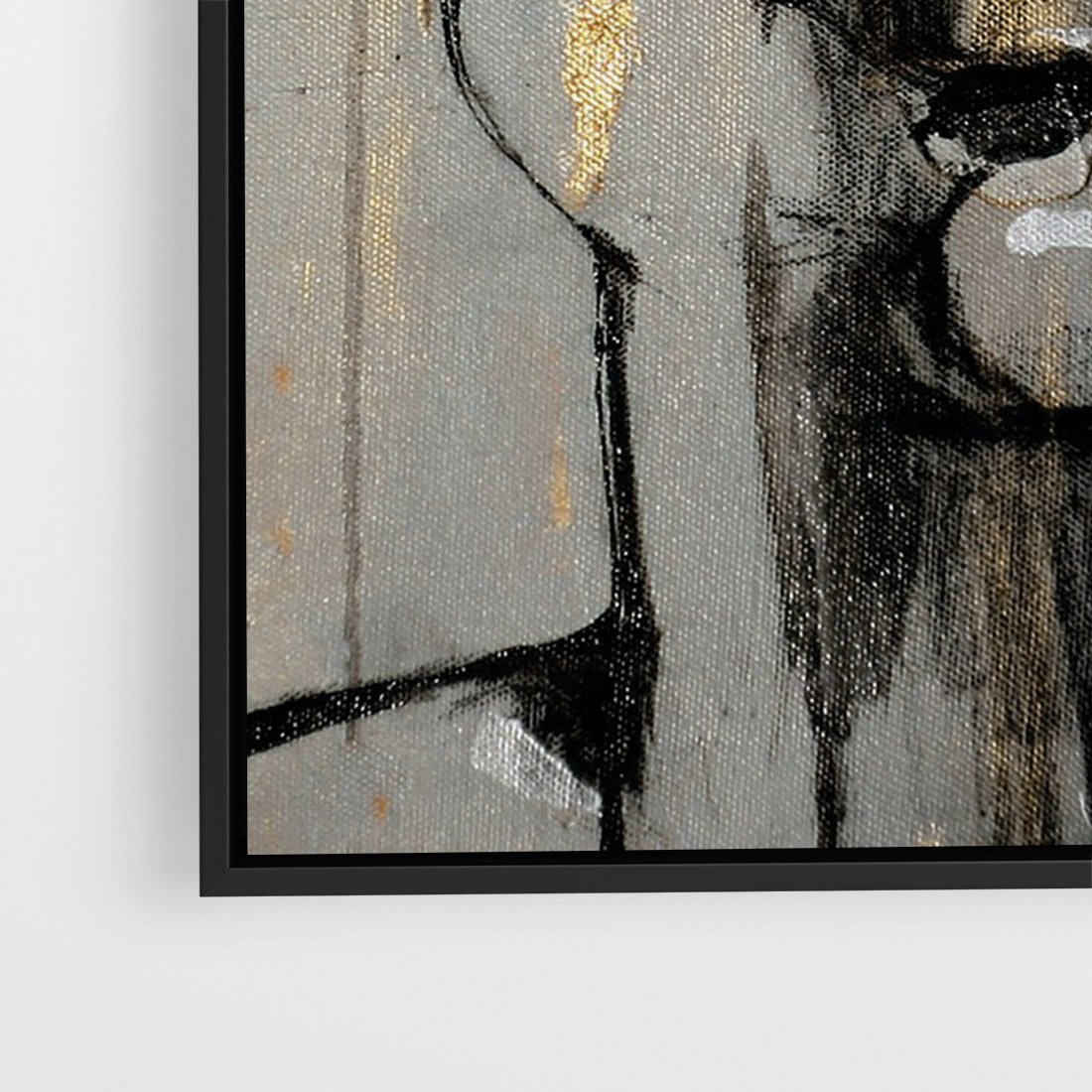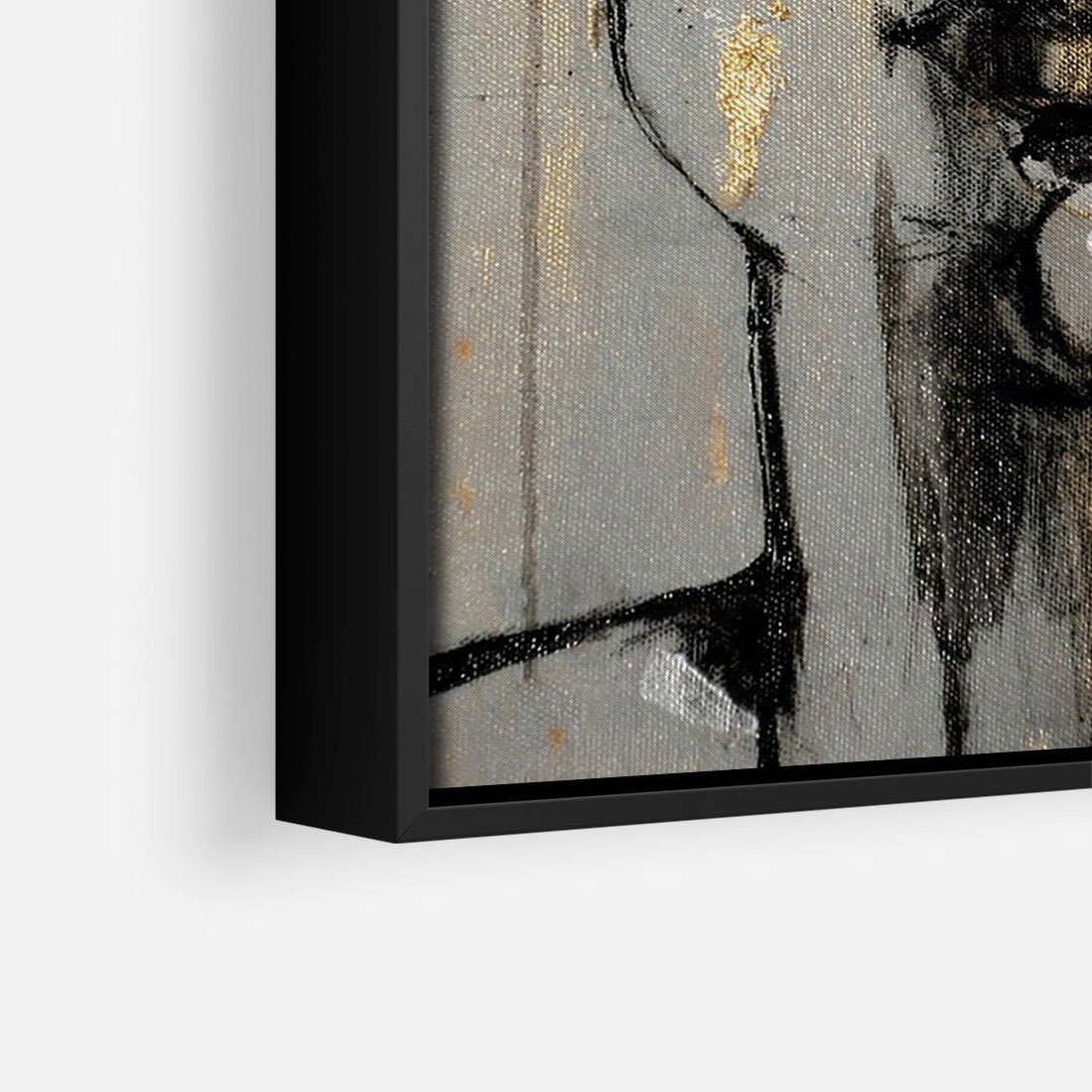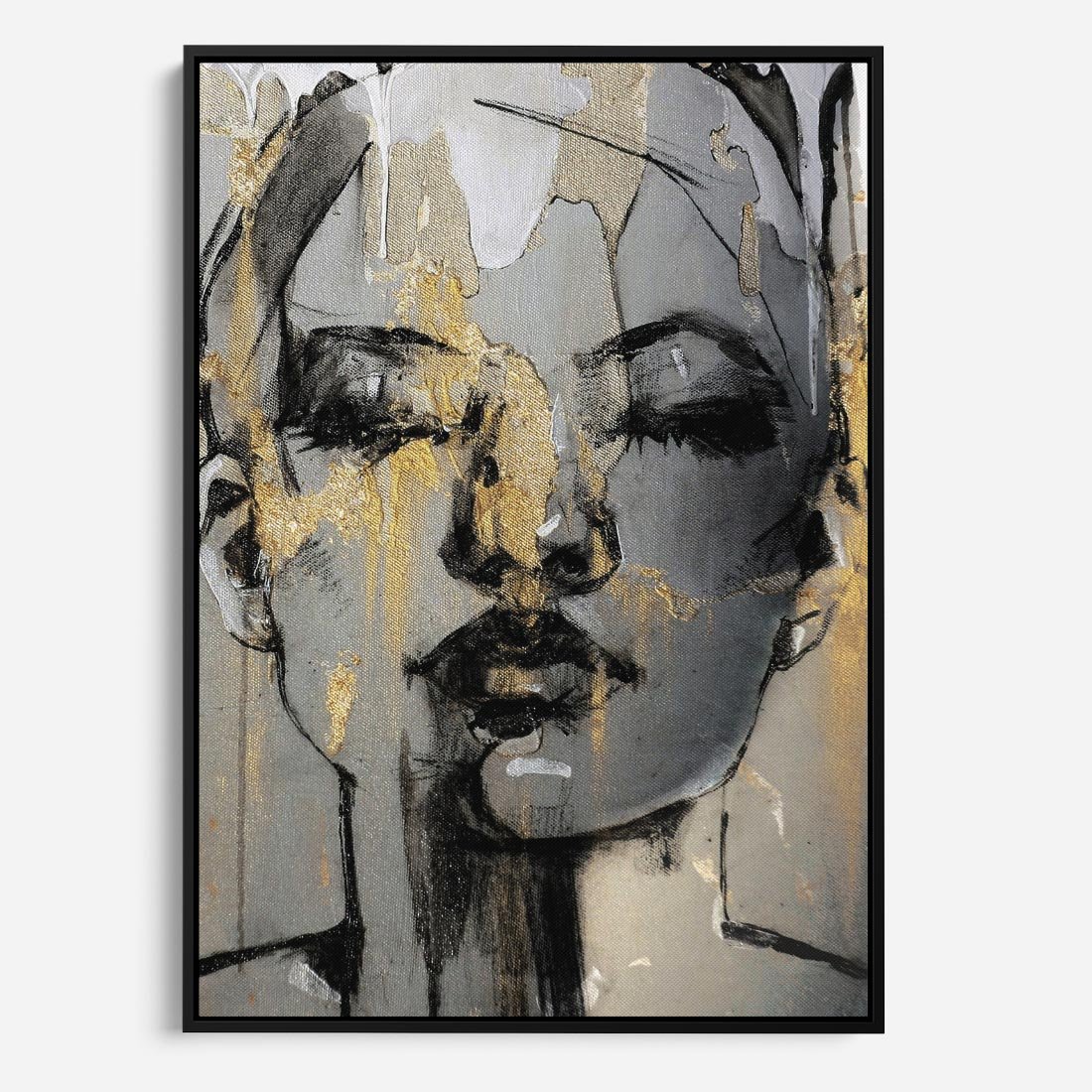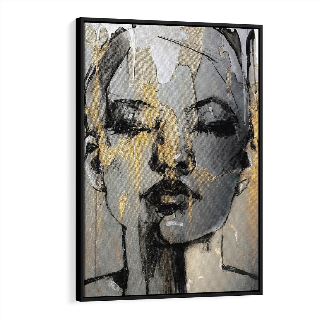 Obraz w ramie 70x100 - Kobieta - Abstrakcyjne Malowidło - złote, usta abstrakcja - rama czarna