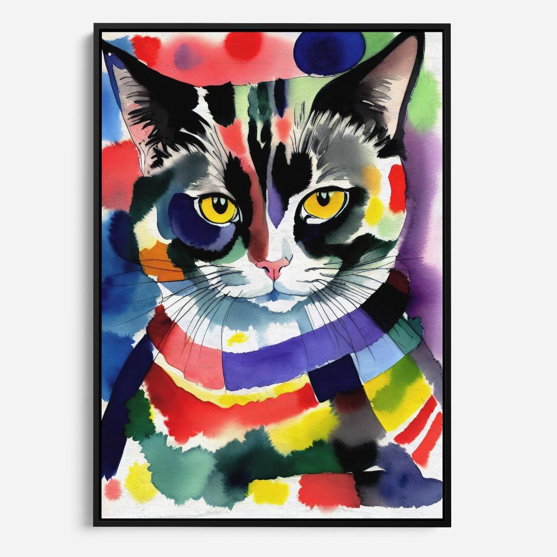 Obraz w ramie 70x100 - Koci Przyjaciel - abstrakcyjny obraz, akwarela - rama czarna