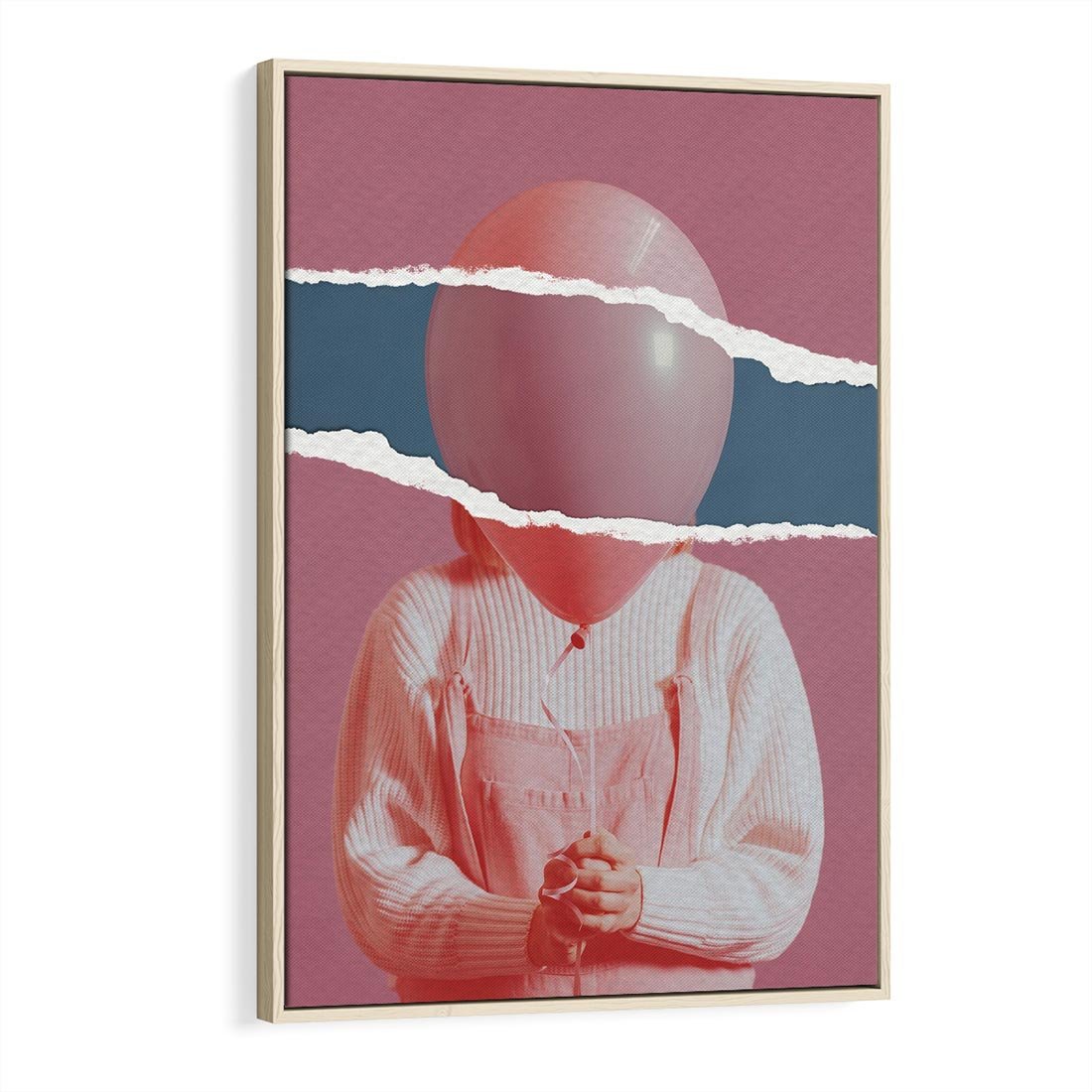 Ten abstrakcyjny kolaż z elementami stylu retro prezentuje dziewczynkę, której głowa zasłonięta jest różowym balonem. Przenosi nas w magiczny świat wyobraźni, gdzie rozdarta kartka nadaje niezwykłego charakteru i zahacza o tematykę snów i pragnień.