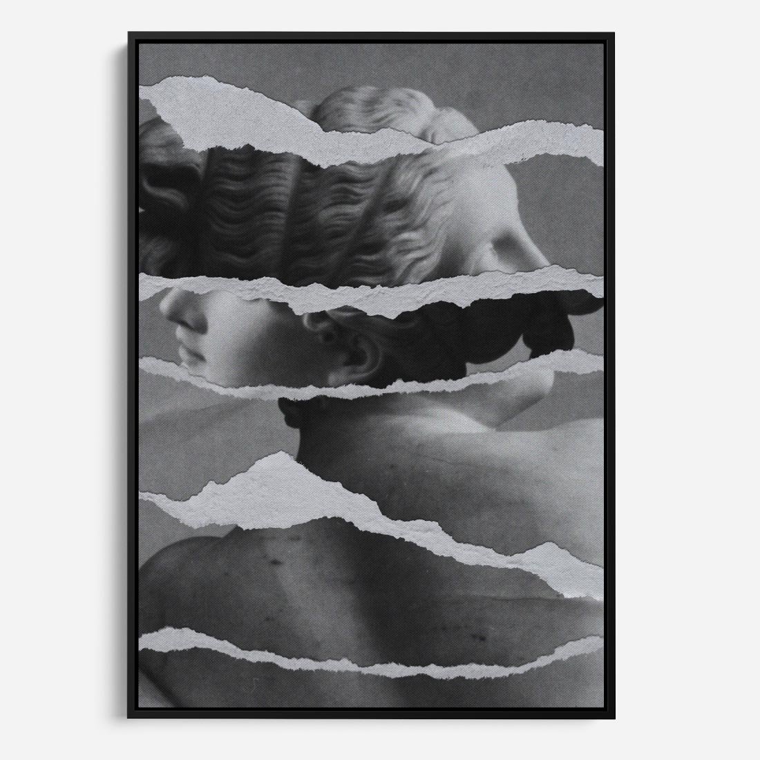 Ten unikalny obraz na płótnie łączy nowoczesność ze sztuką antyczną. Kolaż ze zdjęcia antycznej rzeźby tworzy wyjątkową i abstrakcyjną kompozycję, gdzie odcienie szarości dominują. To dzieło sztuki emanuje harmonią kontrastu między przeszłością a teraźniejszością, nadając Twojemu wnętrzu elegancki i nowoczesny wygląd.