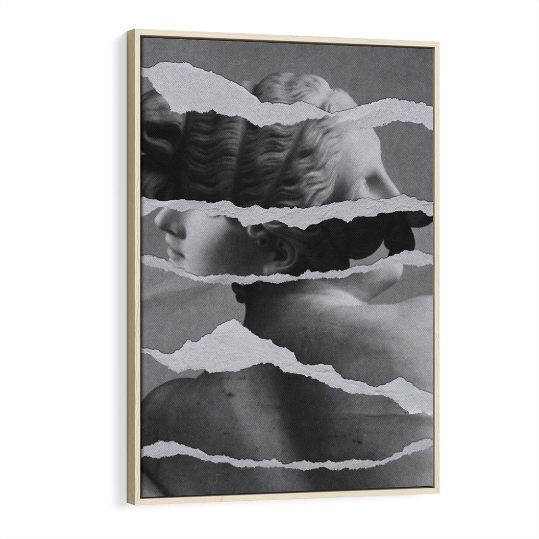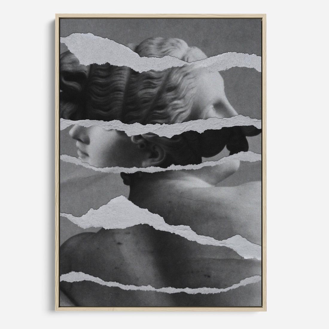 Ten unikalny obraz na płótnie łączy nowoczesność ze sztuką antyczną. Kolaż ze zdjęcia antycznej rzeźby tworzy wyjątkową i abstrakcyjną kompozycję, gdzie odcienie szarości dominują. To dzieło sztuki emanuje harmonią kontrastu między przeszłością a teraźniejszością, nadając Twojemu wnętrzu elegancki i nowoczesny wygląd.