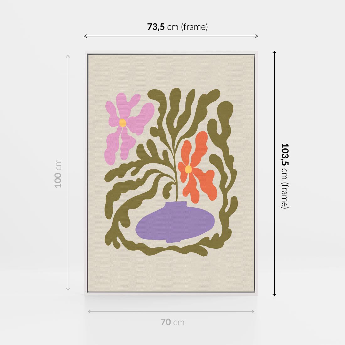Ten plakat prezentuje abstrakcyjne kwiaty w minimalistycznym stylu, doskonale wpisujące się w boho atmosferę salonu. Sztuka ta łączy delikatność kwiatów z abstrakcyjną formą, tworząc spokojny i równocześnie ekspresyjny obraz, który przynosi do wnętrza wyjątkowy duch boho i dodaje charakteru oraz wyjątkowej harmonii.