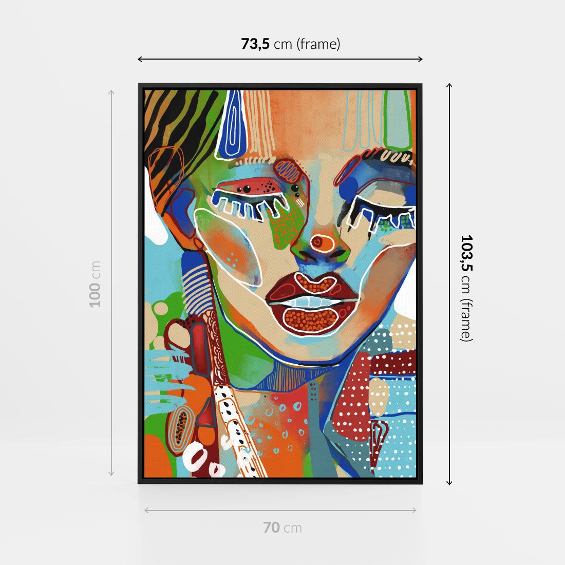 Obraz w ramie 70x100 - Kolorowe Formy - abstrakcyjny portret kobiety, twarz - rama czarna