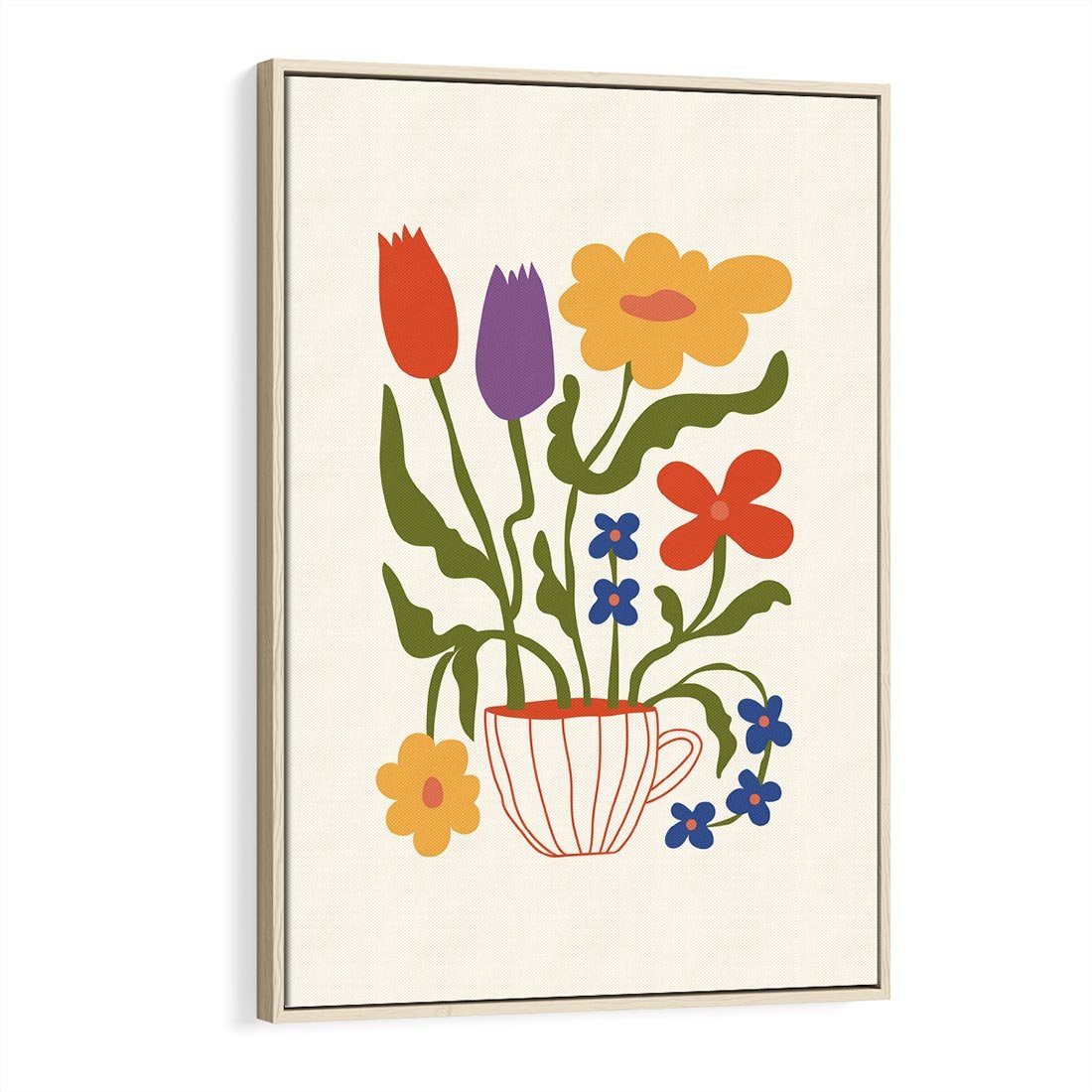 Ten plakat ukazuje abstrakcyjne kwiaty w filiżance w jasnej i nowoczesnej kompozycji. Ta delikatna forma sztuki niesie ze sobą harmonię i spokój, tworząc przyjemną i nowoczesną dekorację, która wprowadza do przestrzeni nutę natury i estetycznego piękna.
