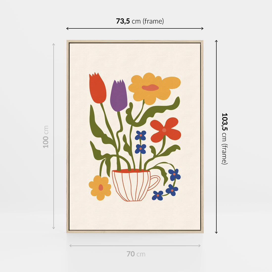 Obraz w ramie 70x100 - Kolorowe Granice - kwiaty w filizance, abstrakcja - rama drewno