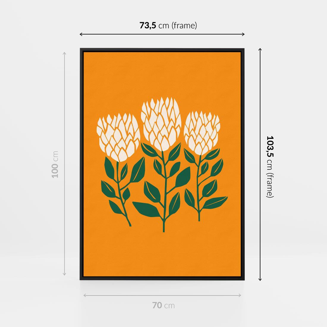 Ten nowoczesny plakat prezentuje abstrakcyjną kwiatową kompozycję na intensywnym, żółtym tle. Sztuka ta wprowadza optymizm i wibracje do Twojego salonu, tworząc pełne energii i wyrazistości otoczenie, które przyciąga uwagę i dodaje charakteru przestrzeni.