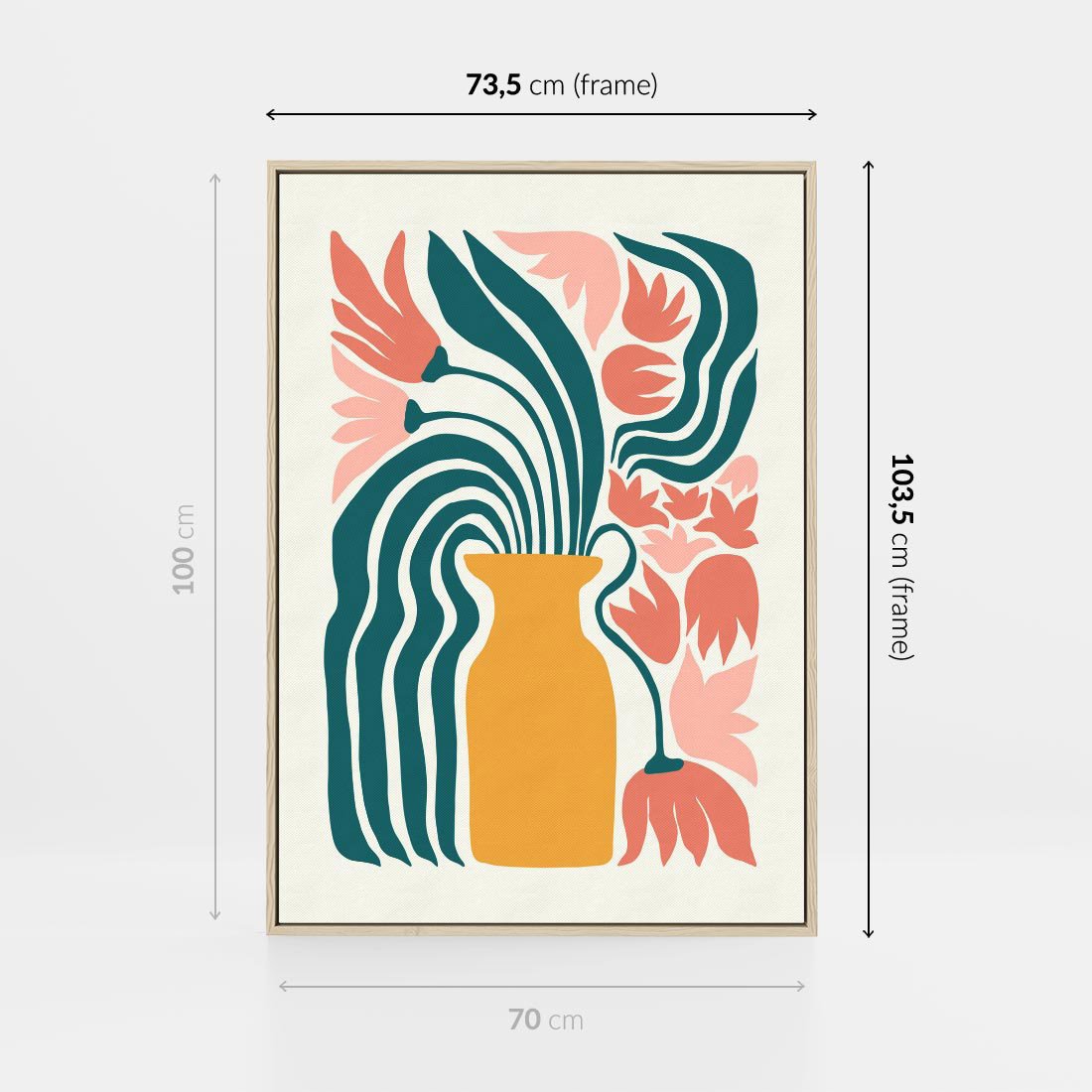 Obraz w ramie 70x100 - Kolorowe Pasmo - abstrakcyjne kwiaty w wazonie, pdastelowe kolory - rama drewno