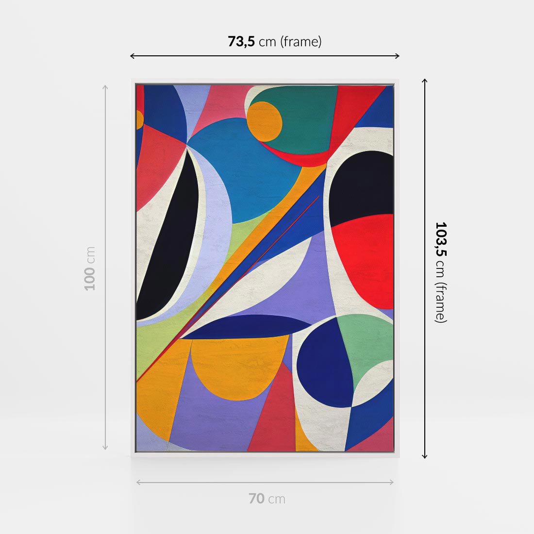 Obraz w ramie 70x100 - Kolorowe Przesunięcia Kształtów - abstrakcyjny obraz olejny, żywe kolory - rama biała