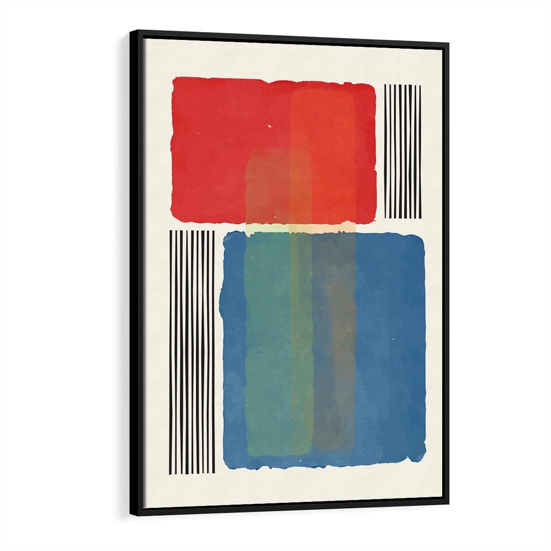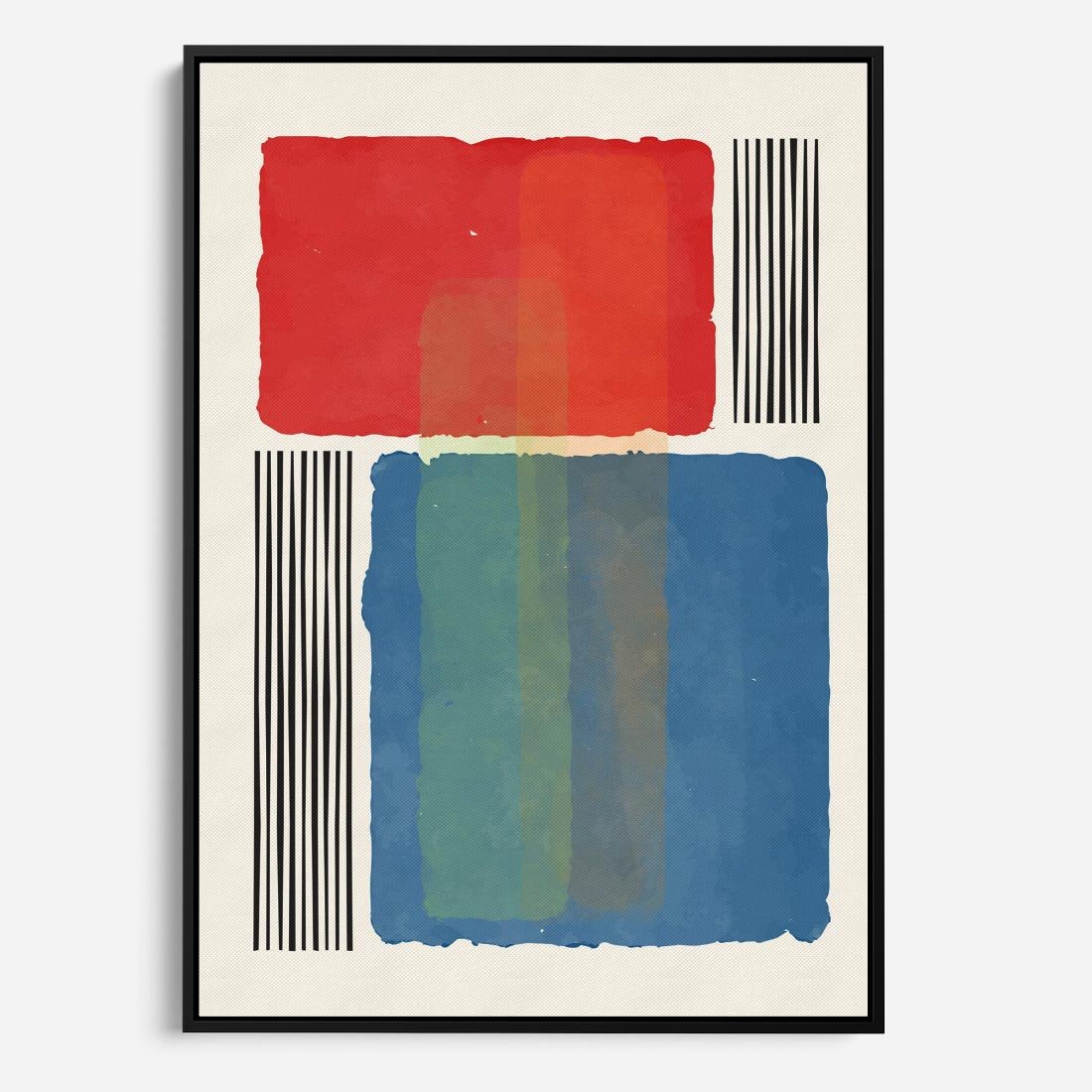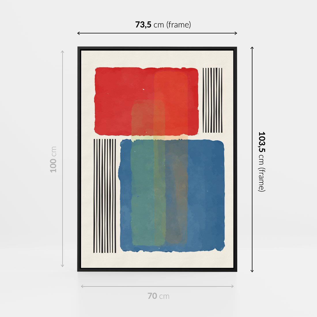 To dzieło nowoczesnej sztuki przynosi dynamiczną mieszankę kolorów i kształtów, tworząc hipnotyzującą geometrię. Intensywne kształty prostokątów kontrastują z precyzyjnymi czarnymi kreskami, wprowadzając porządek w abstrakcyjny chaos. Ta kompozycja modern art przenosi widza w wir wyrazistych wrażeń, inspirując do interpretacji i odkrywania ukrytych znaczeń w bogactwie form i barw.