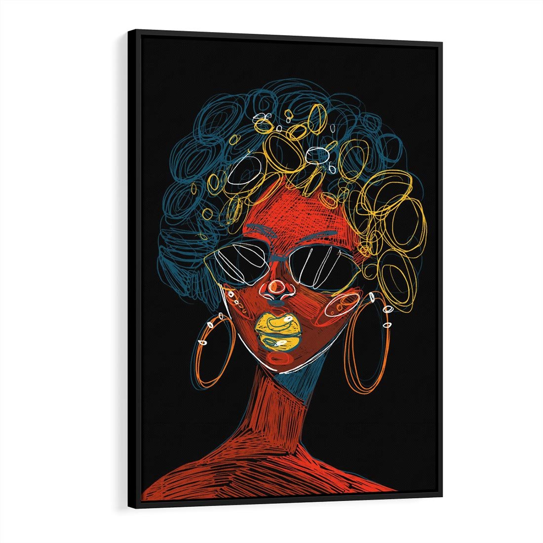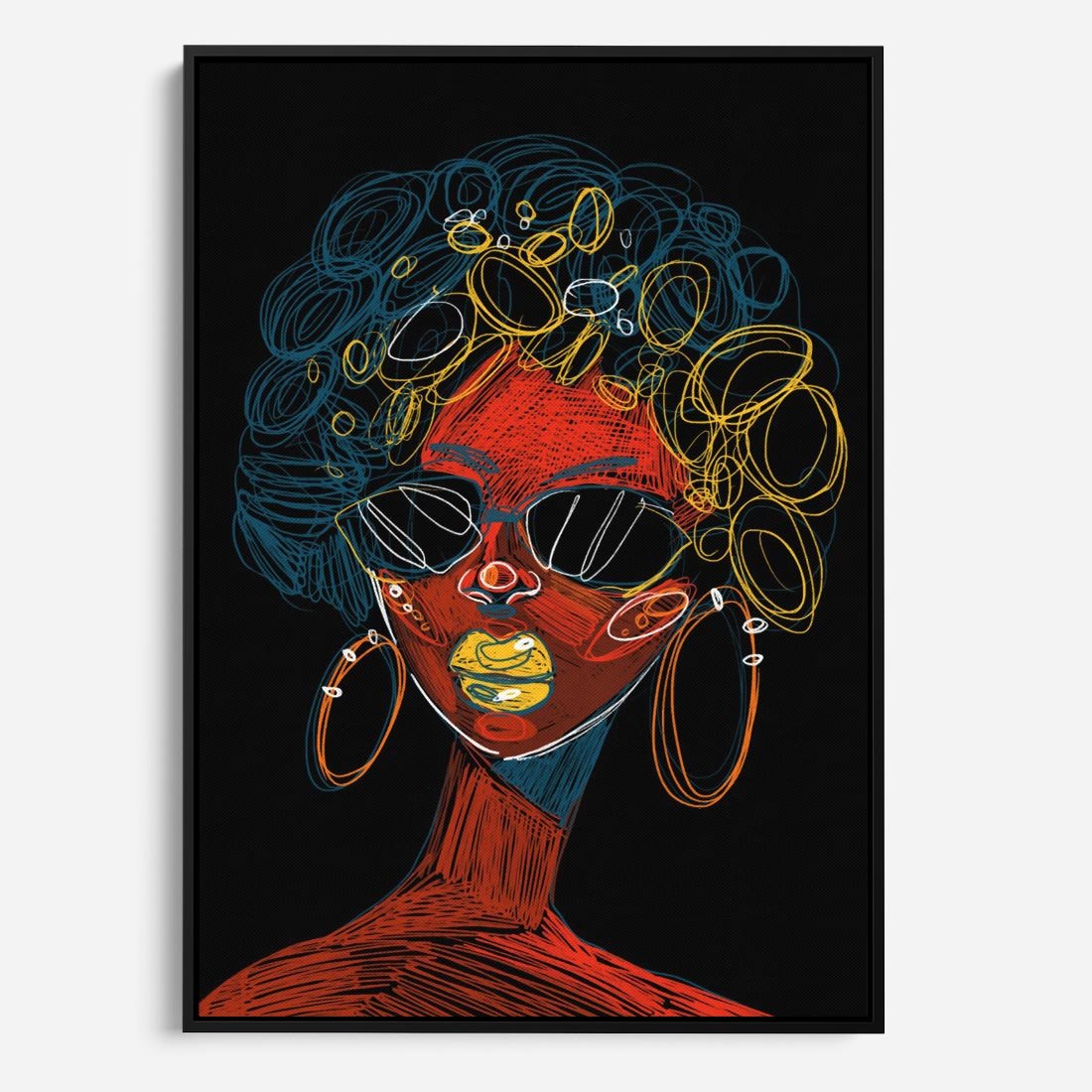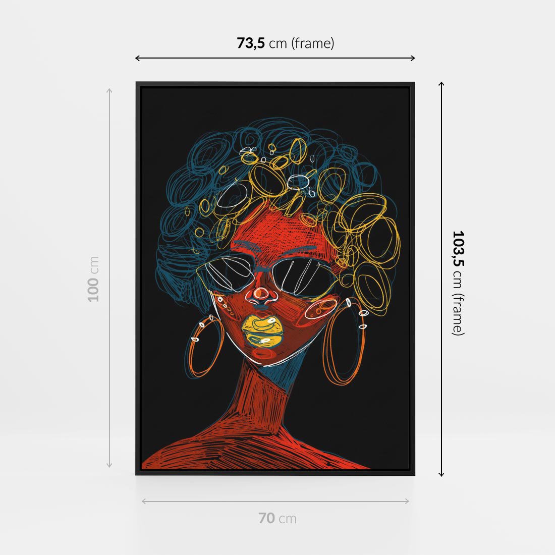Obraz w ramie 70x100 - Kolorowe Wibracje Rzeczywistości - abstrakcyjny portret kobiety, twarz - rama czarna
