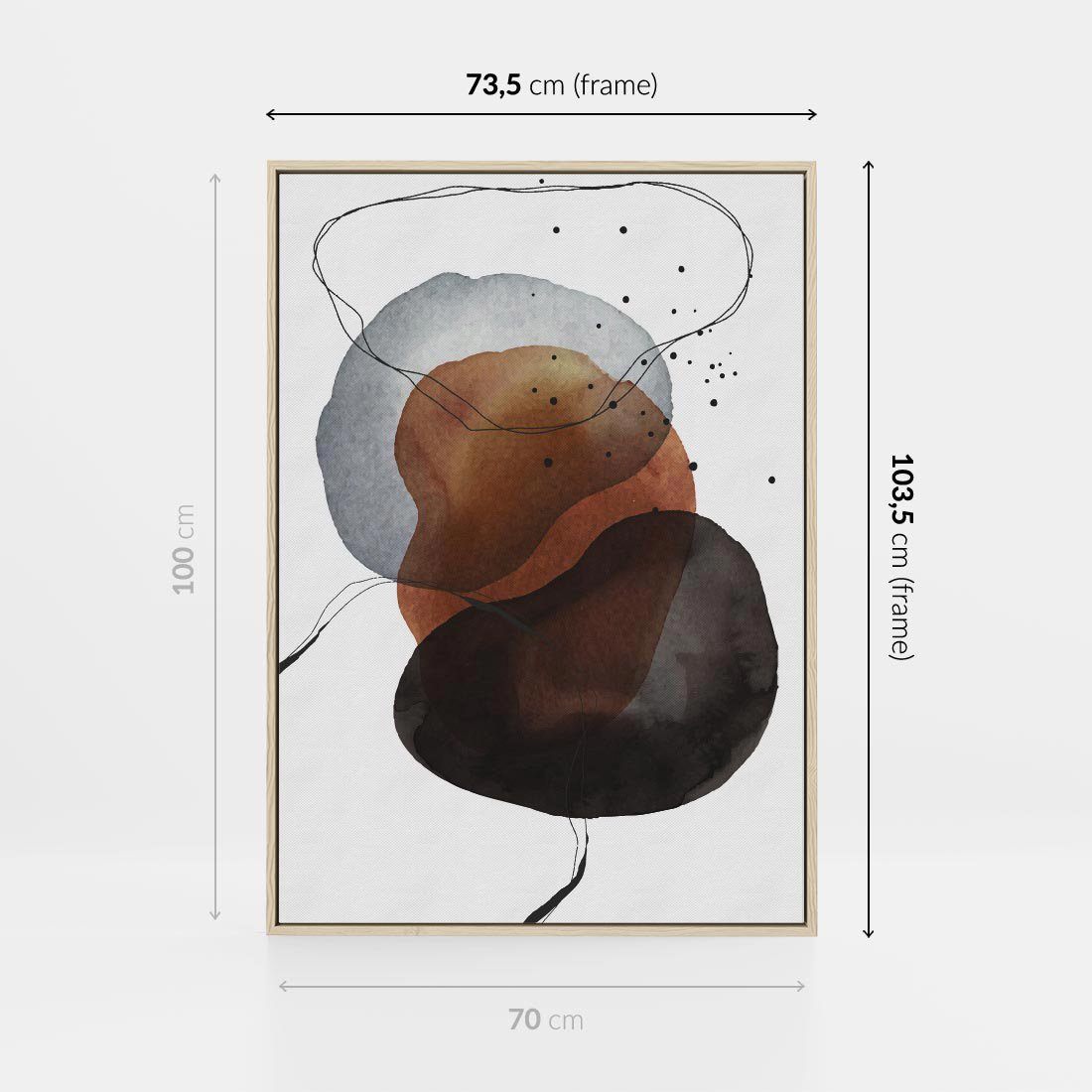 Obraz w ramie 70x100 - Kolorowe Wizje - abstrakcyjne plamy akwarelowe, czarny szkic - rama drewno