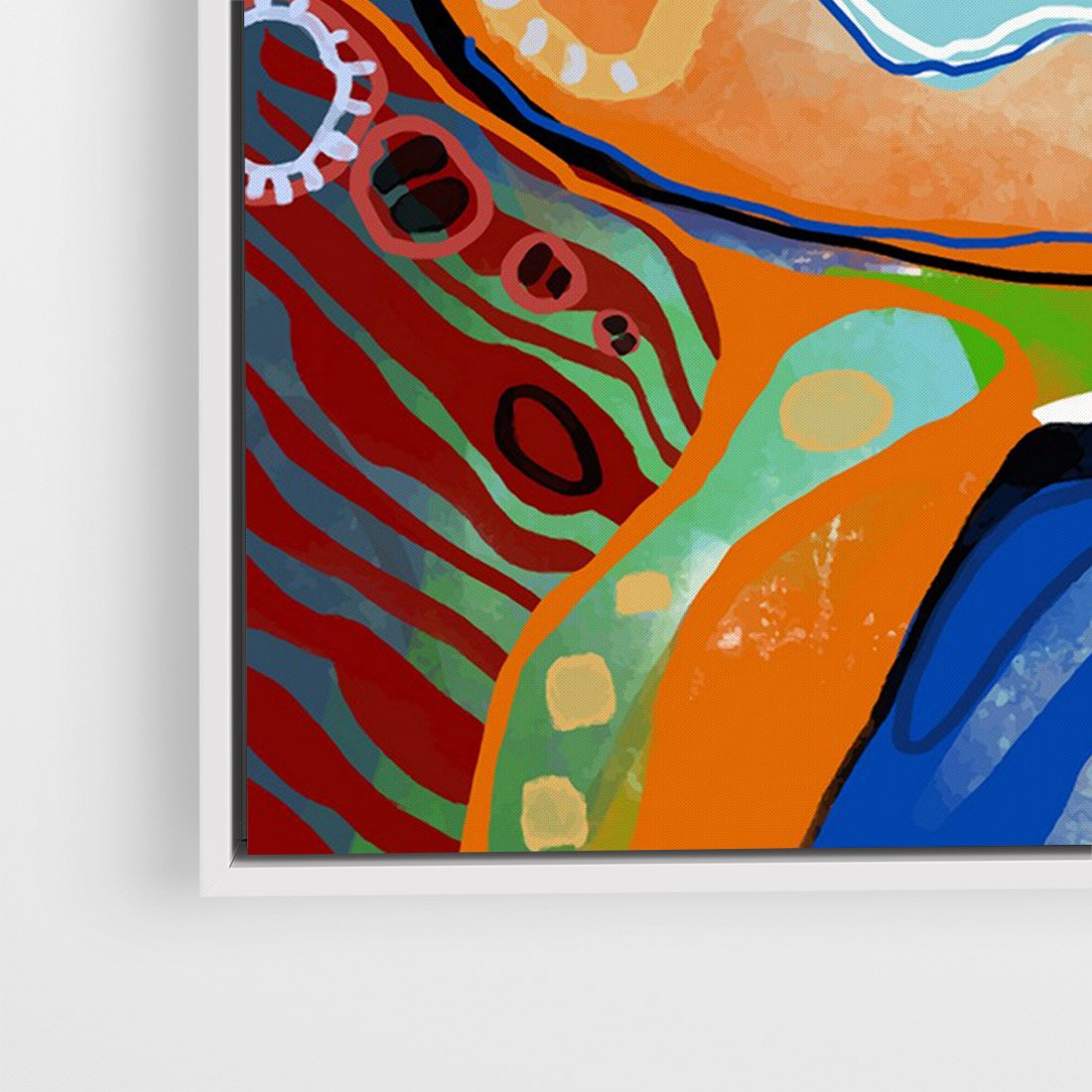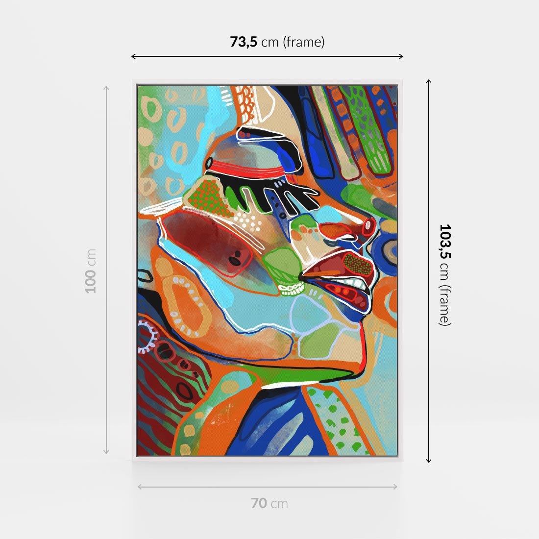 Obraz w ramie 70x100 - Kolorowe Wnętrza Kształtów - abstrakcyjny portret kobiety, twarz - rama biała