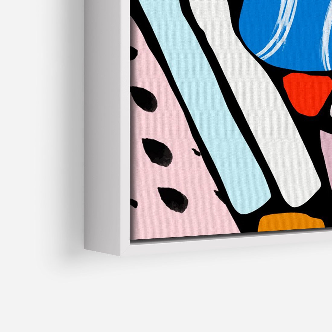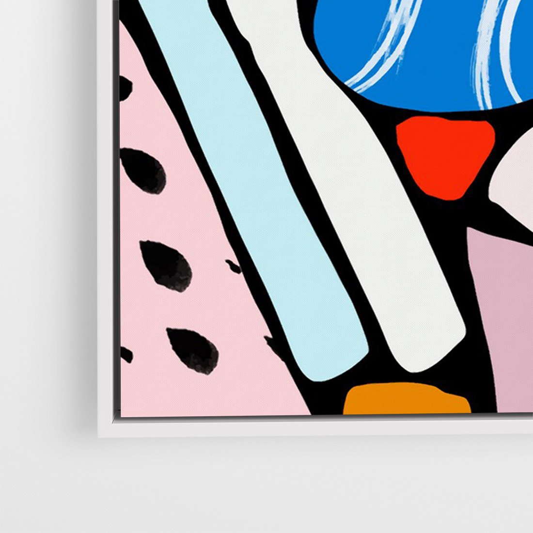 Obraz w ramie 70x100 - Kolory Na Czerni - abstrakcyjne formy, komiksowy styl - rama biała
