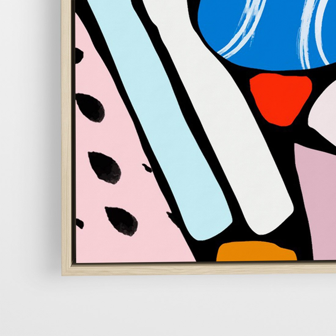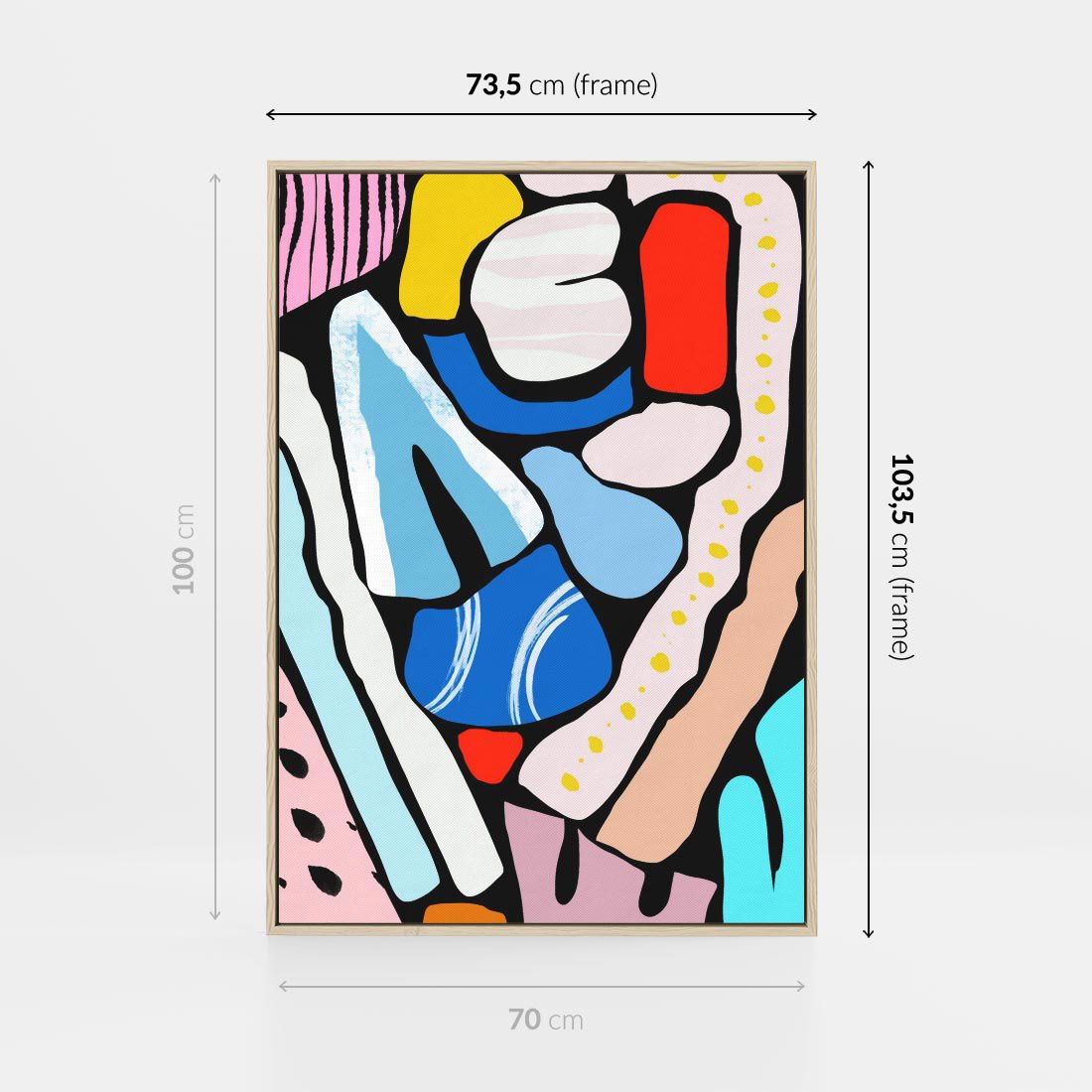 Obraz w ramie 70x100 - Kolory Na Czerni - abstrakcyjne formy, komiksowy styl - rama drewno