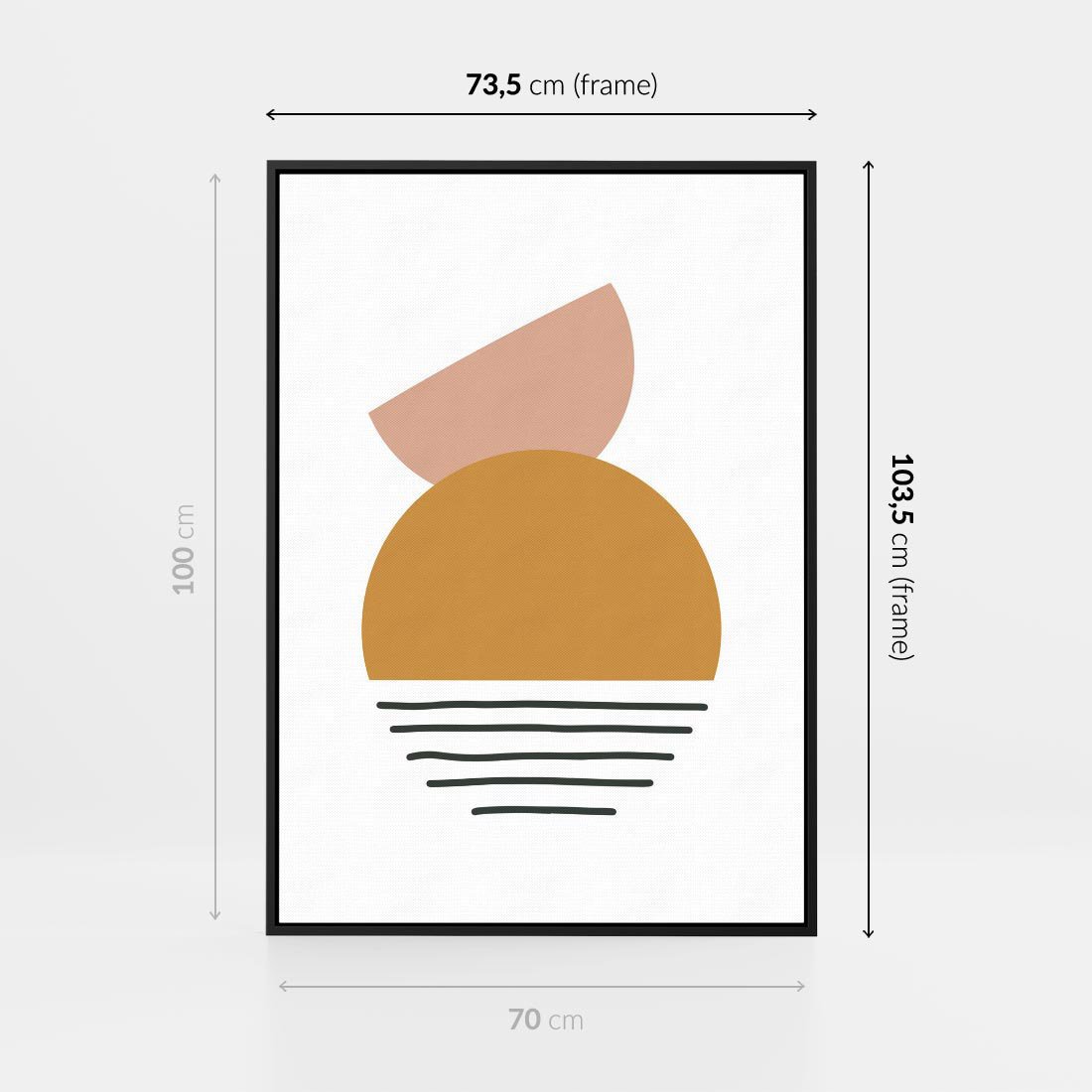 Ta zachwycająca kompozycja kół i kresek w ciepłych odcieniach to hołd dla estetyki mid century. Zmysłowe linie harmonijnie splatają się z geometrycznymi formami, tworząc dynamiczny obraz, który przenosi cię w podróż w czasie do inspirującej epoki sztuki.