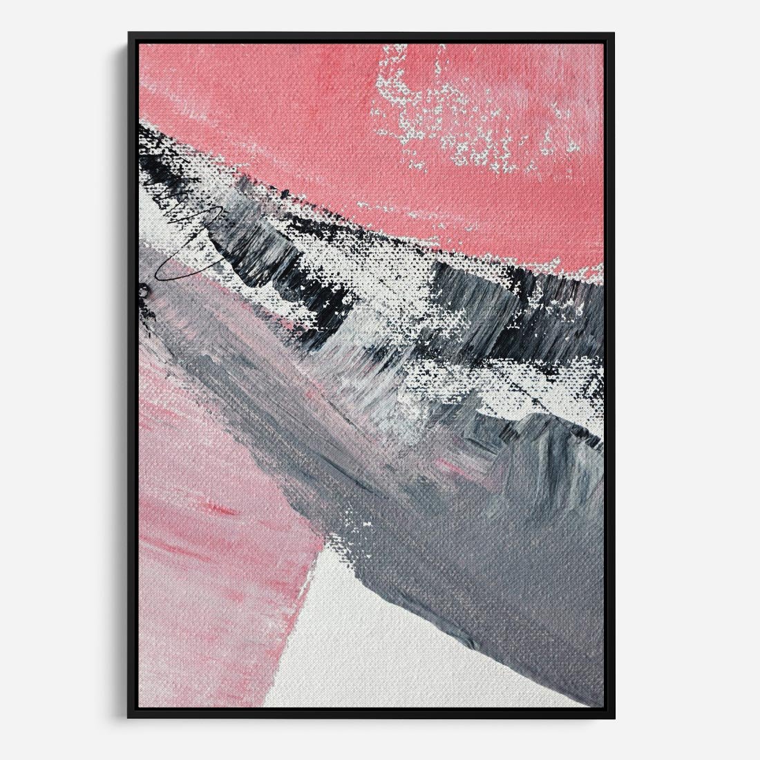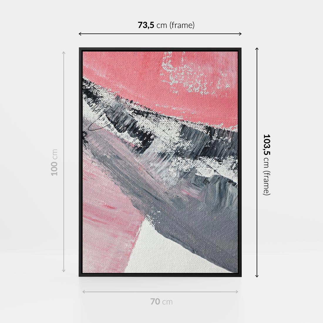 Obraz w ramie 70x100 - Kontrastujący Ruch Emocji - abstrakcyjne pasy farby, kolory róż szary czarny - rama czarna