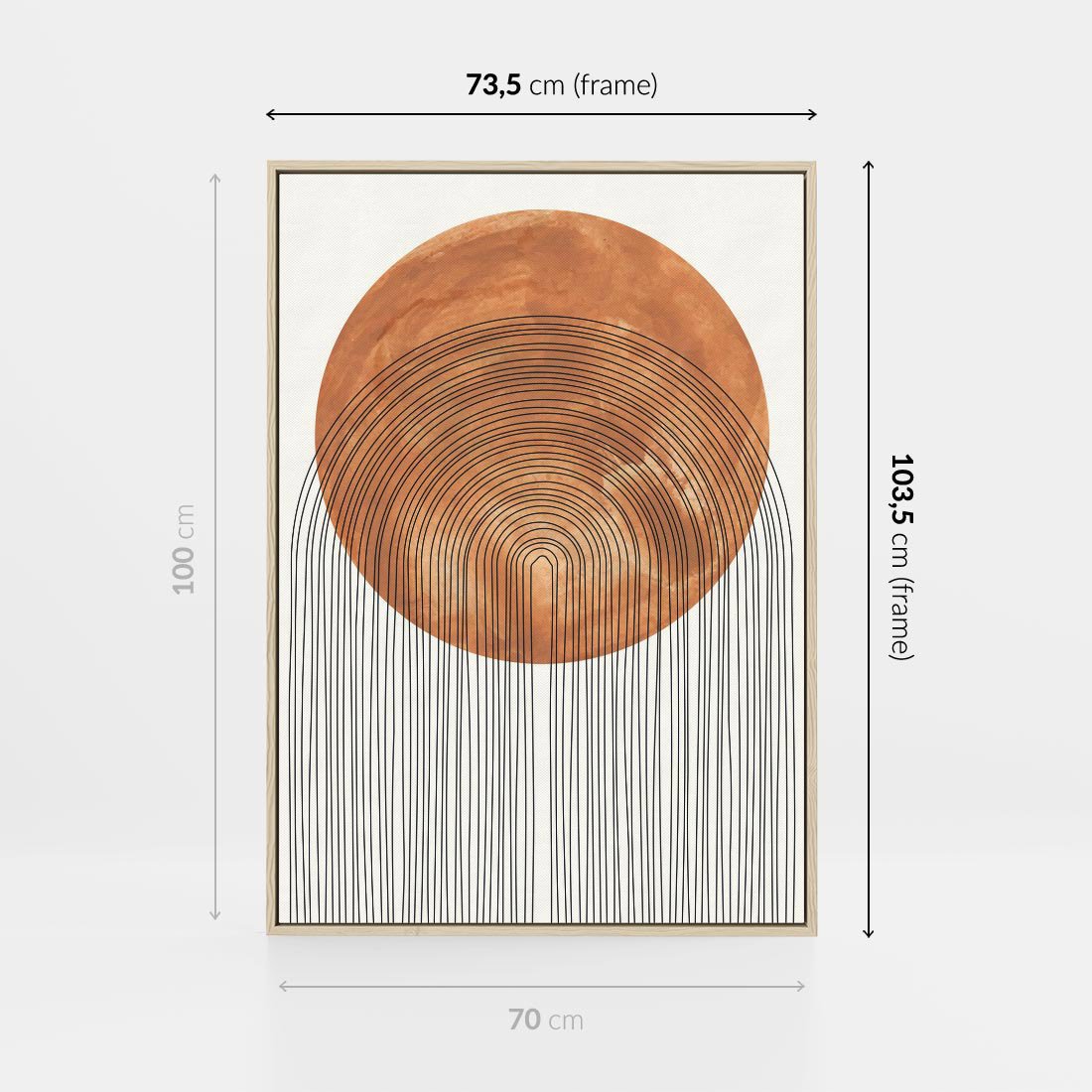 To plakat w stylu boho łączy koło z minimalistyczną estetyką. Ten unikalny połączenie wprowadza do Twojej przestrzeni spokojną aurę i nowoczesny wygląd, tworząc równocześnie wyrafinowany akcent artystyczny.