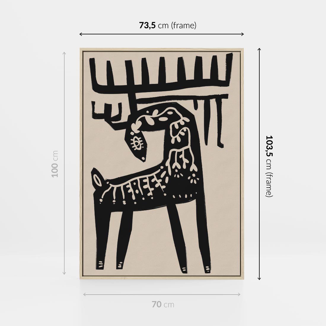 Obraz w ramie 70x100 - Konturem Zdefiniowany - skandynawska sztuka, jeleń - rama drewno
