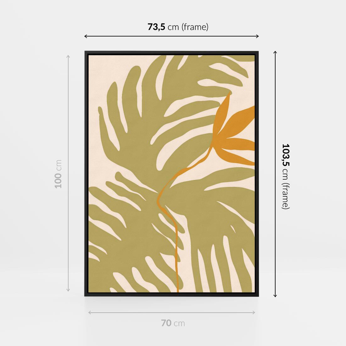 Ten minimalistyczny obraz, nawiązujący do modern art, przedstawia nieregularne kształty w beżowych odcieniach, które przypominają palmy. To artystyczne dzieło wprowadza do Twojej przestrzeni spokój i subtelną egzotyczną atmosferę, jednocześnie zachowując nowoczesny charakter.