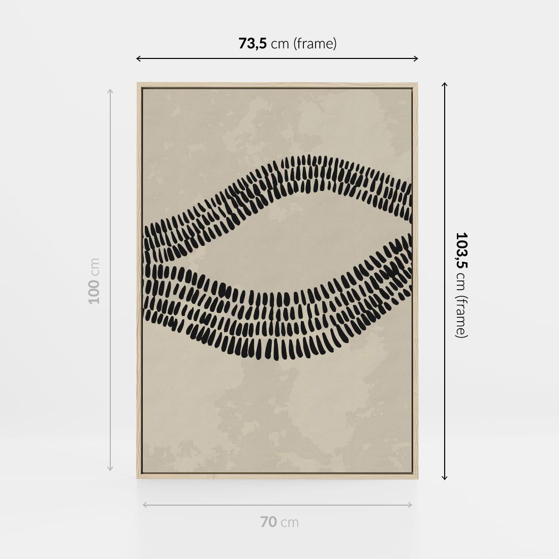 Obraz w ramie 70x100 - Kontury Ewolucji Materii - boho plakat, czarne kropki kreski - rama drewno