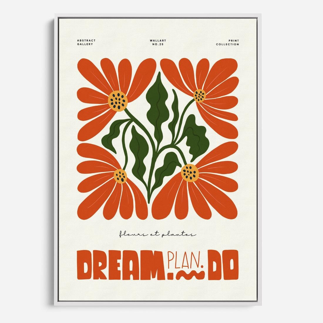 Ta nowoczesna sztuka w abstrakcyjnym stylu ożywia przestrzeń kolorowymi kwiatowymi motywami. Wyjątkowa typografia dodaje głębi i wyraża siłę wyrazu w tej pełnej energii kompozycji.
