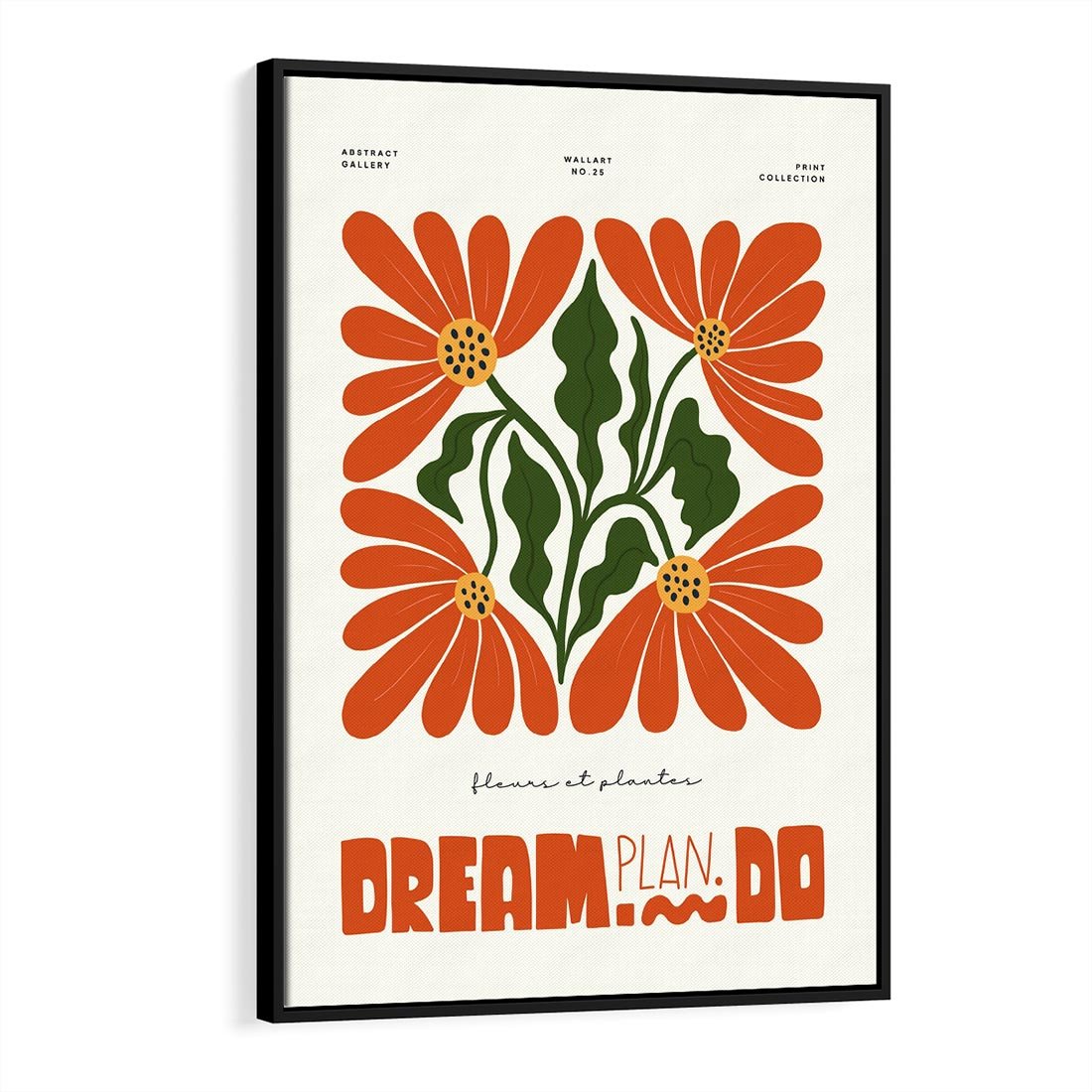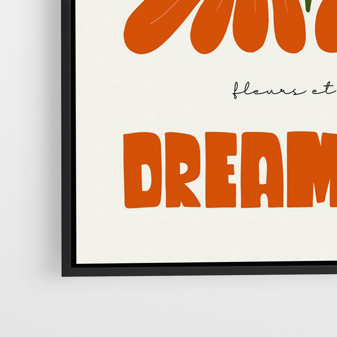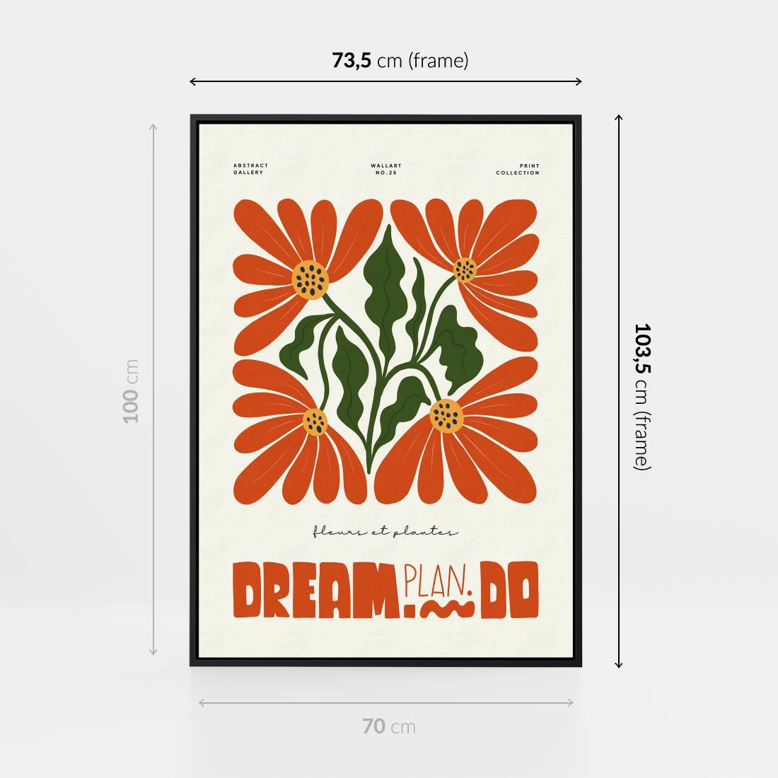 Ta nowoczesna sztuka w abstrakcyjnym stylu ożywia przestrzeń kolorowymi kwiatowymi motywami. Wyjątkowa typografia dodaje głębi i wyraża siłę wyrazu w tej pełnej energii kompozycji.
