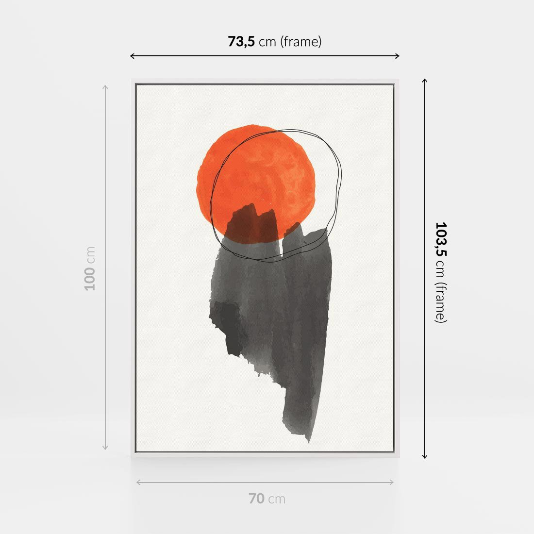 Zainspirowane nowoczesnym minimalizmem, ten obraz zawiera abstrakcyjne, nieregularne plamy w odcieniach czerni, szarości i pomarańczu. Wyjątkowa kompozycja dodaje głębi i wyrazistości.