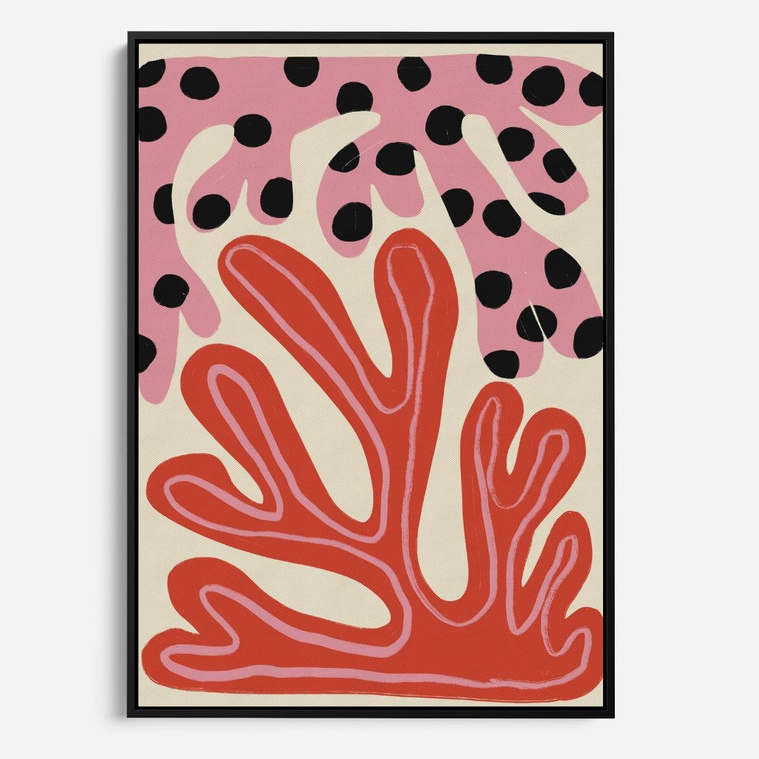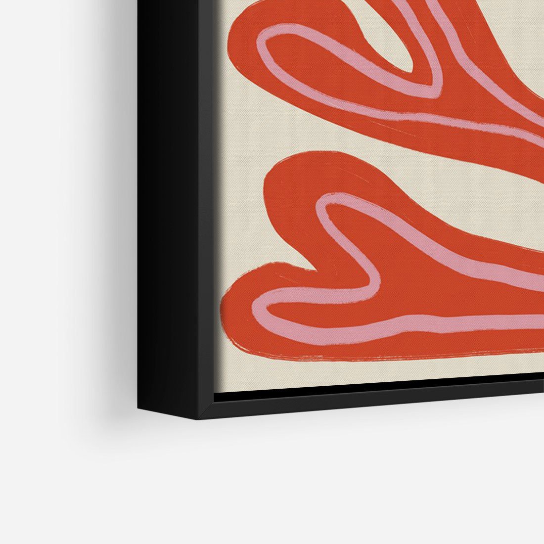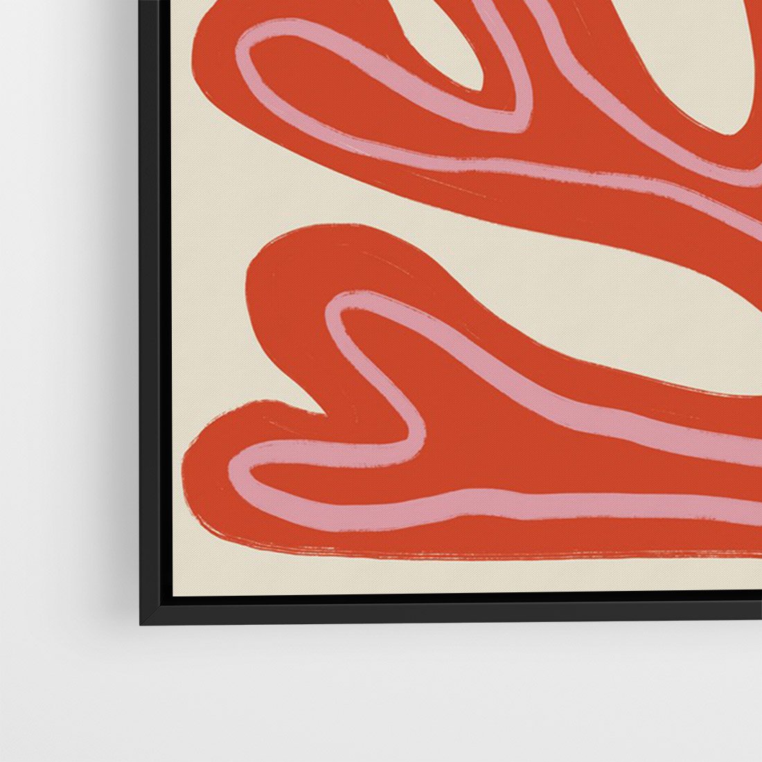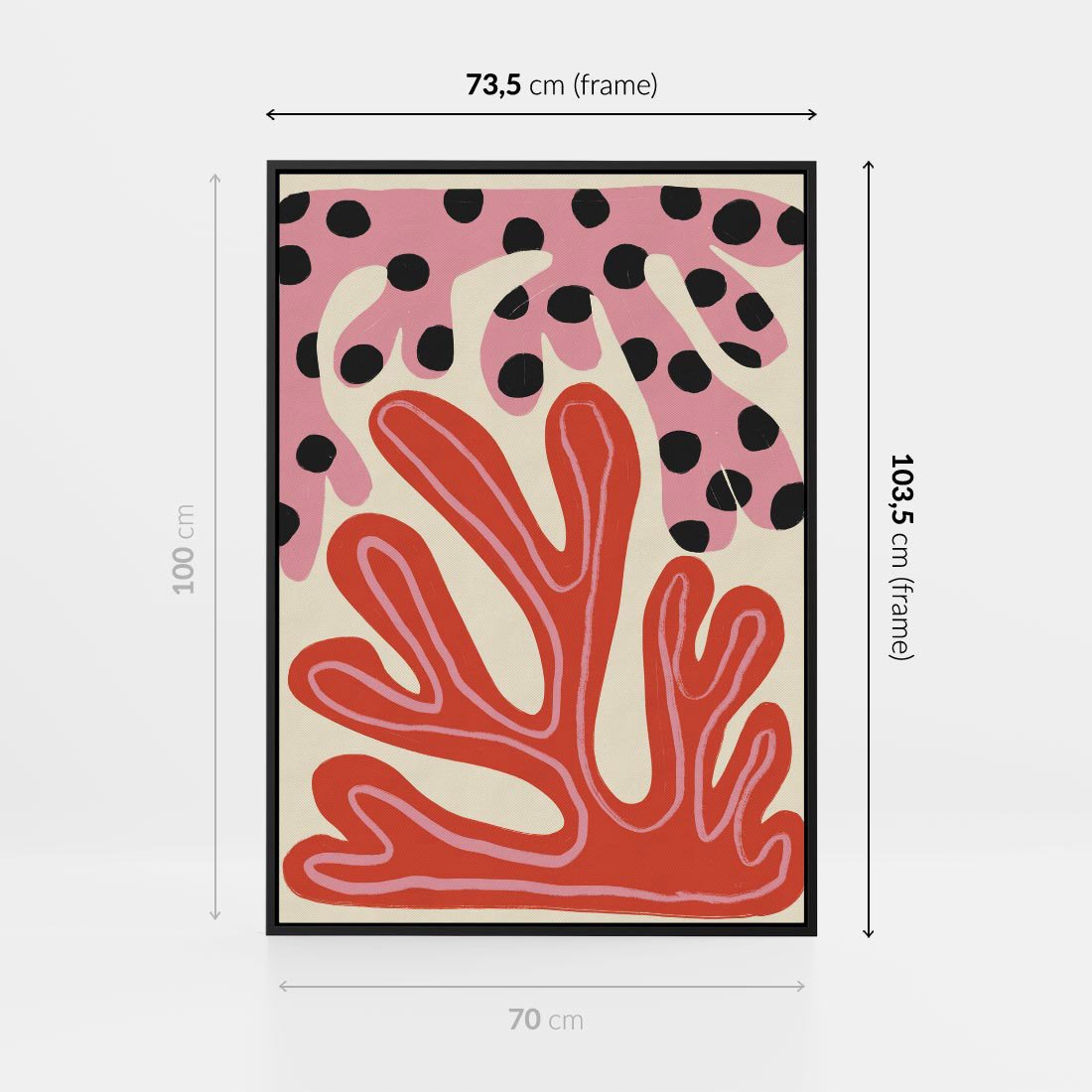 Ten abstrakcyjny obraz w formie plakatu fascynuje dziwnymi kształtami, które tworzą harmonię w odcieniach różowego i czerwonego. Jego wyjątkowość polega na zdolności zachęcania do refleksji, pobudzając wyobraźnię widza poprzez niekonwencjonalne kompozycje i intensywne barwy.