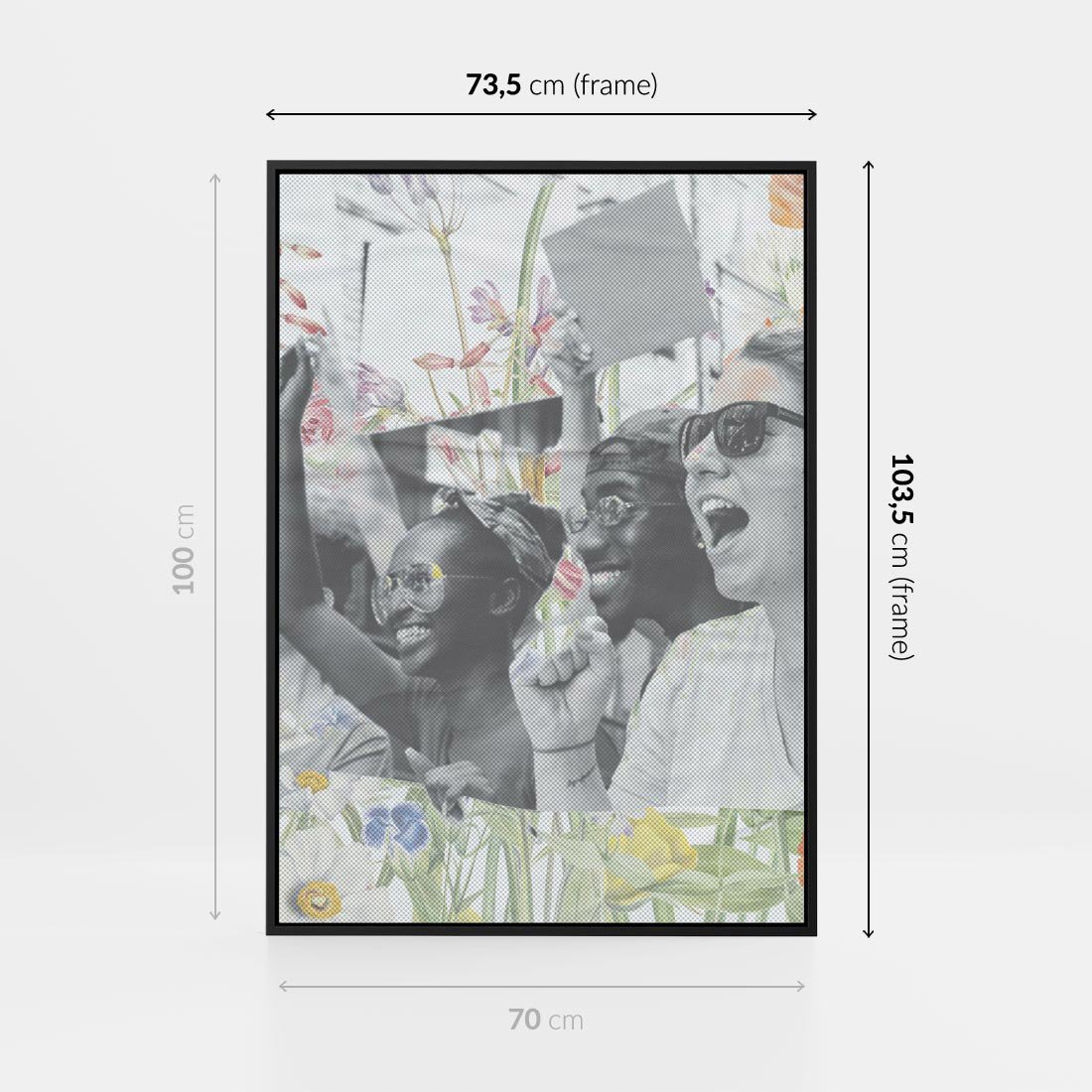 Obraz w ramie 70x100 - Księga zaklętych marzeń - kolaż, czarnobiałe zdjęcie wesołych młodych ludzi - rama czarna