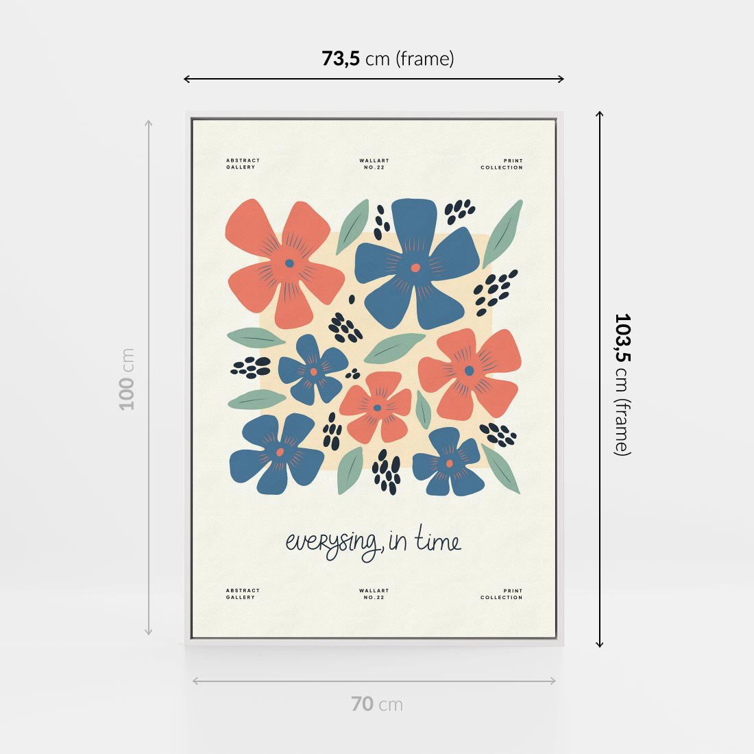 Ten plakat w nowoczesnej abstrakcji odkrywa piękno kwiatów, balansując z delikatną typografią. Kompozycja oddaje wyjątkową estetykę natury i sztuki, tworząc inspirującą przestrzeń.