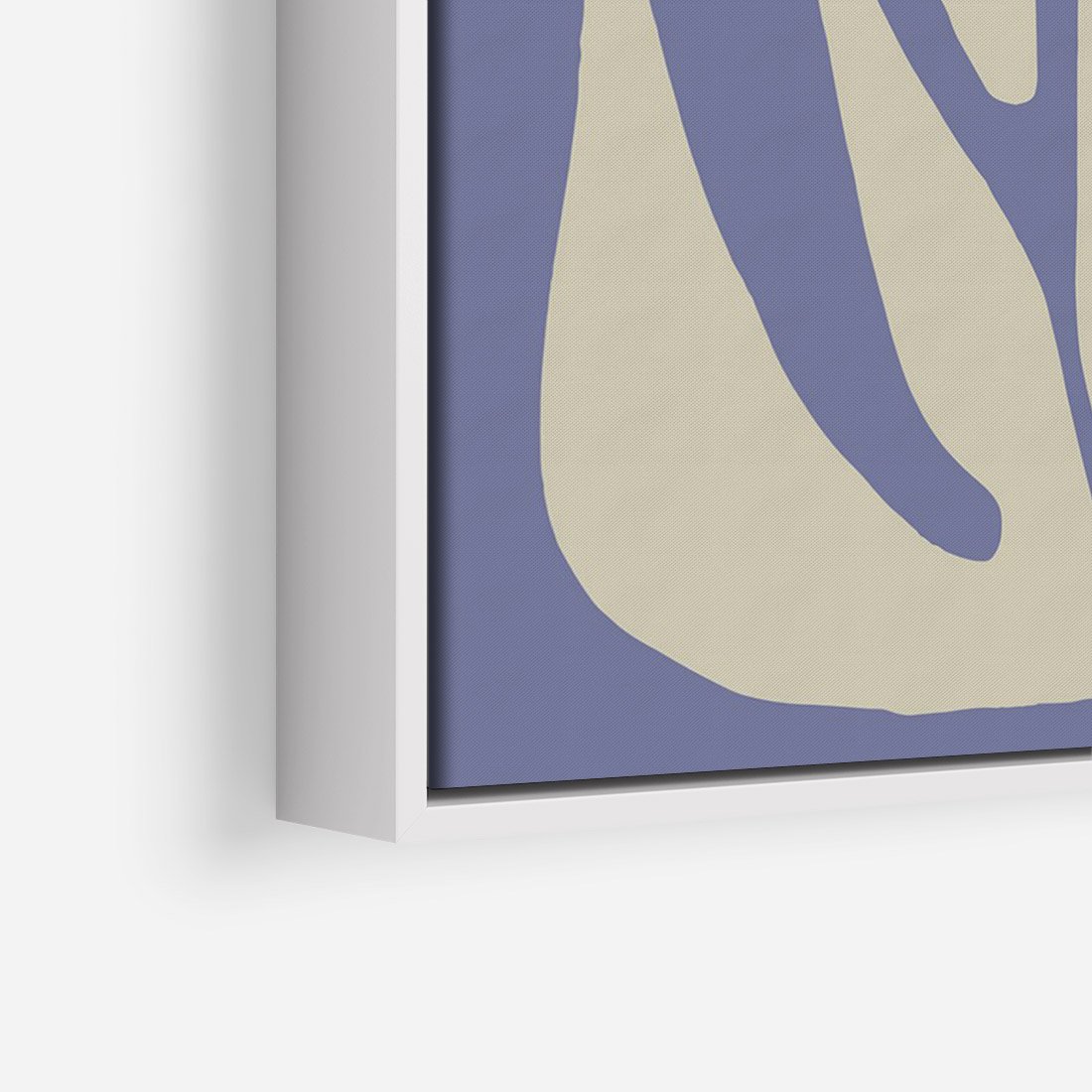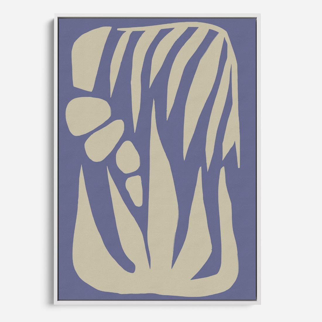 Abstrakcyjna sztuka w skandynawskim stylu, emanująca chabrowym kolorem, łączy prostotę i wyrazistość, tworząc harmonijną atmosferę.