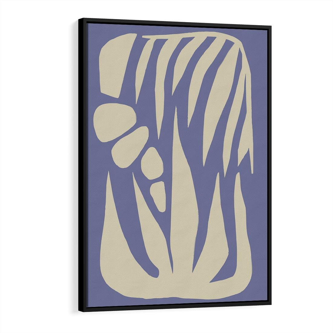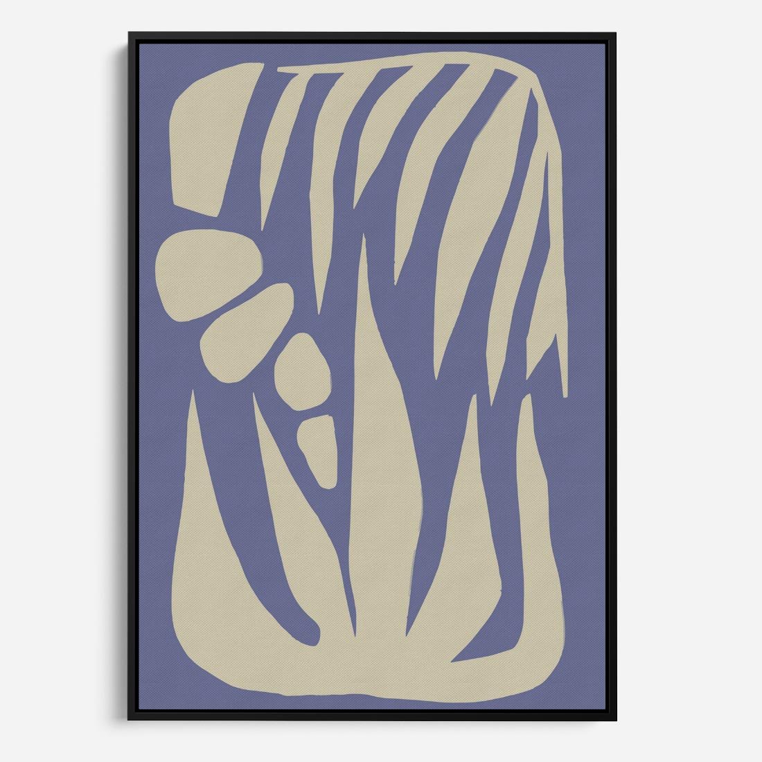 Abstrakcyjna sztuka w skandynawskim stylu, emanująca chabrowym kolorem, łączy prostotę i wyrazistość, tworząc harmonijną atmosferę.