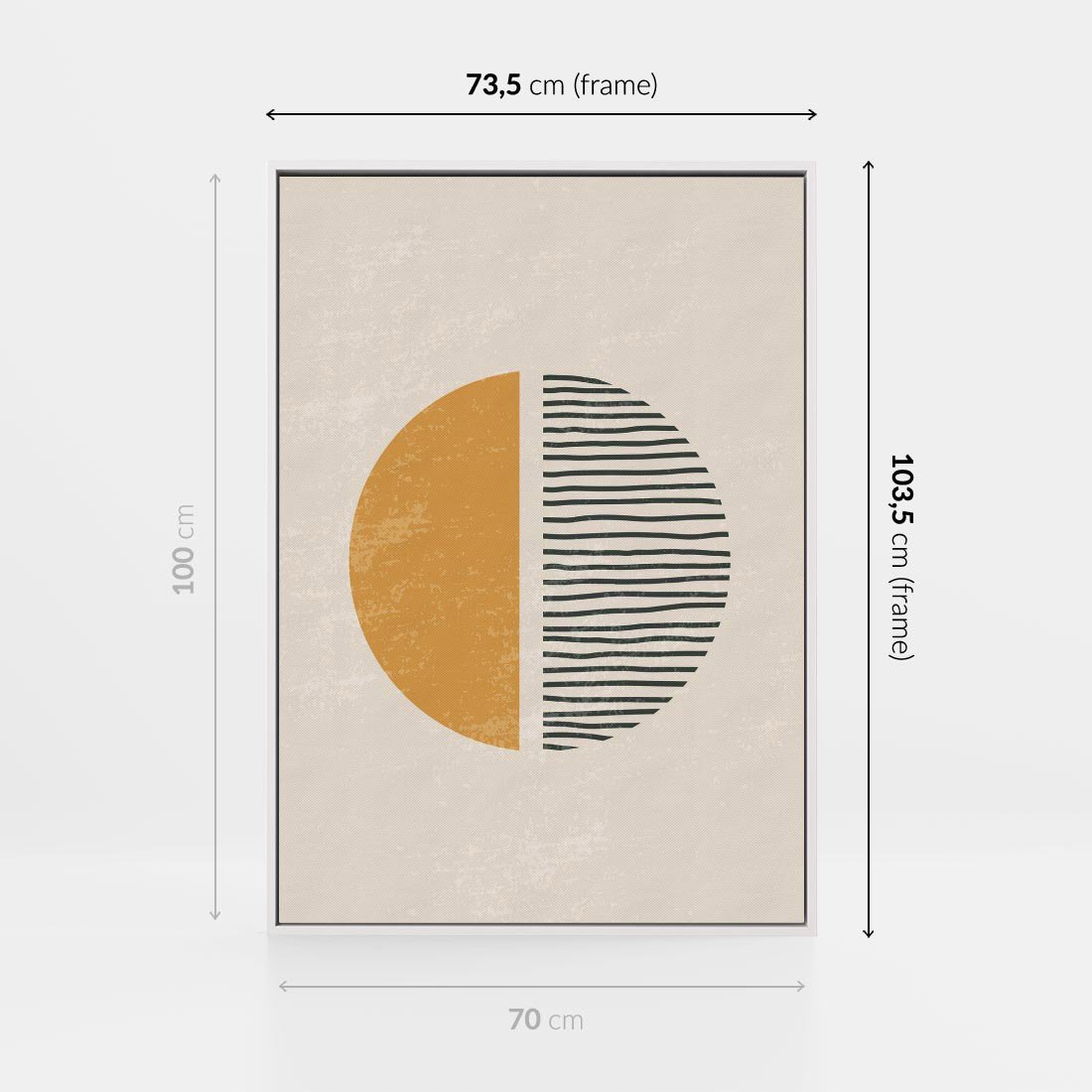 Nasza nowoczesna sztuka to minimalistyczne połączenie linii i koła w delikatnych beżowych odcieniach. To wyjątkowe dzieło sztuki wprowadza do Twojej przestrzeni subtelność i nowoczesność, tworząc spokojną kompozycję w duchu minimalizmu.