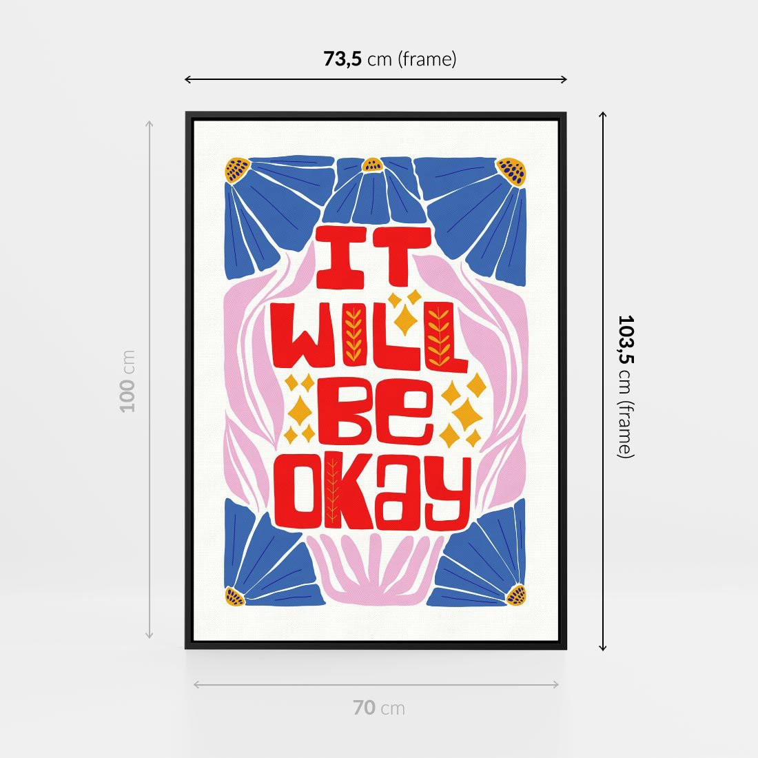 Obraz w ramie 70x100 - Kwiatowa Ekstaza - czerwona pozytywna typografia, kwiatowa kompozycja - rama czarna